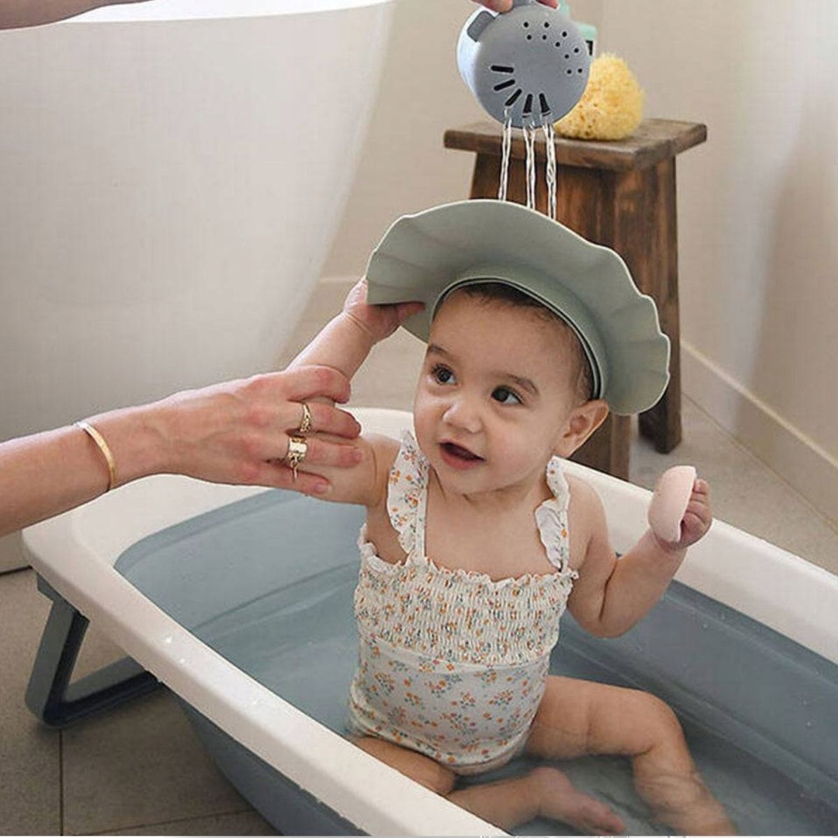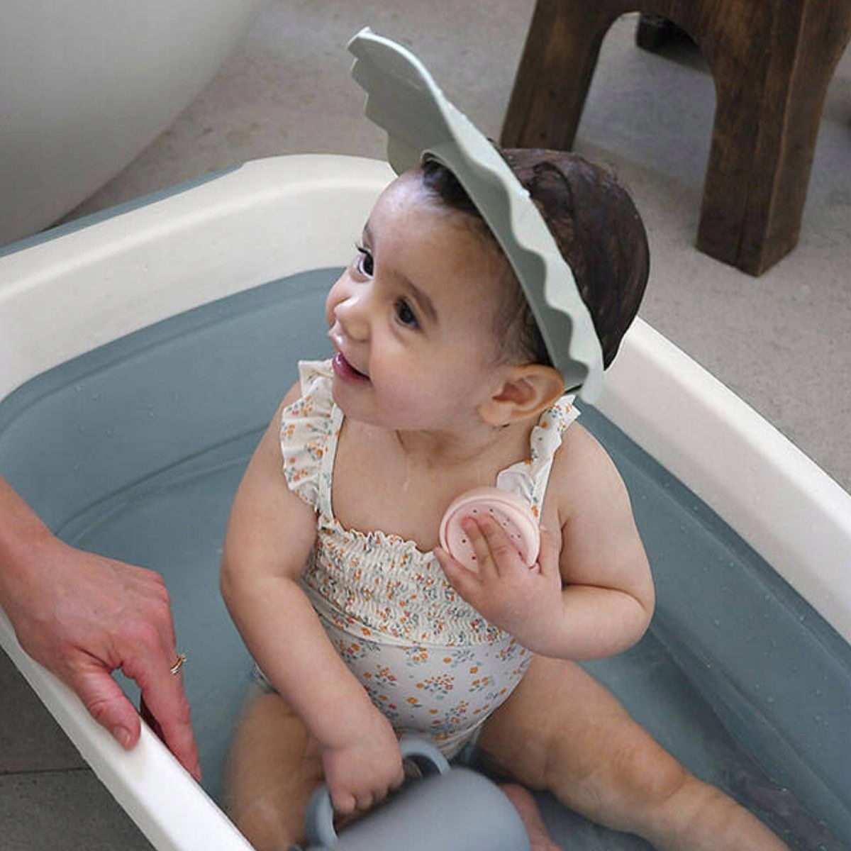 Топпер для ванны с козырьком TINY – это практичный гаджет, который позволяет без стресса и плача мыть волосы маленьких детей. Защищает глаза, уши и лицо ребенка от проточной воды и шампуня, обеспечивая полный комфорт. Благодаря эластичному и регулируемому ремню он идеально прилегает к голове ребенка, а мягкий, водонепроницаемый материал гарантирует приятное использование и безопасность.