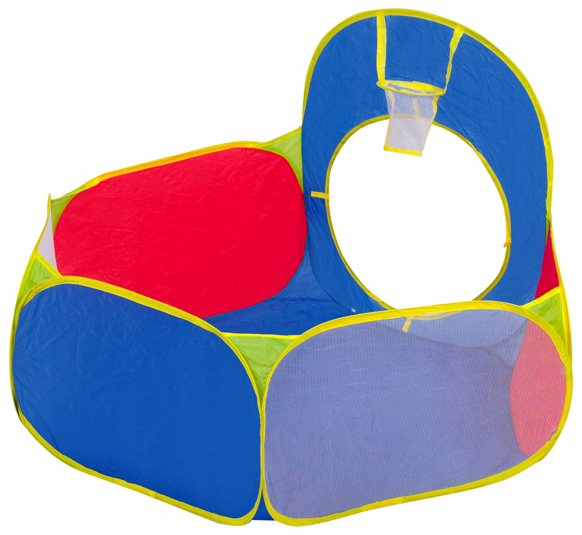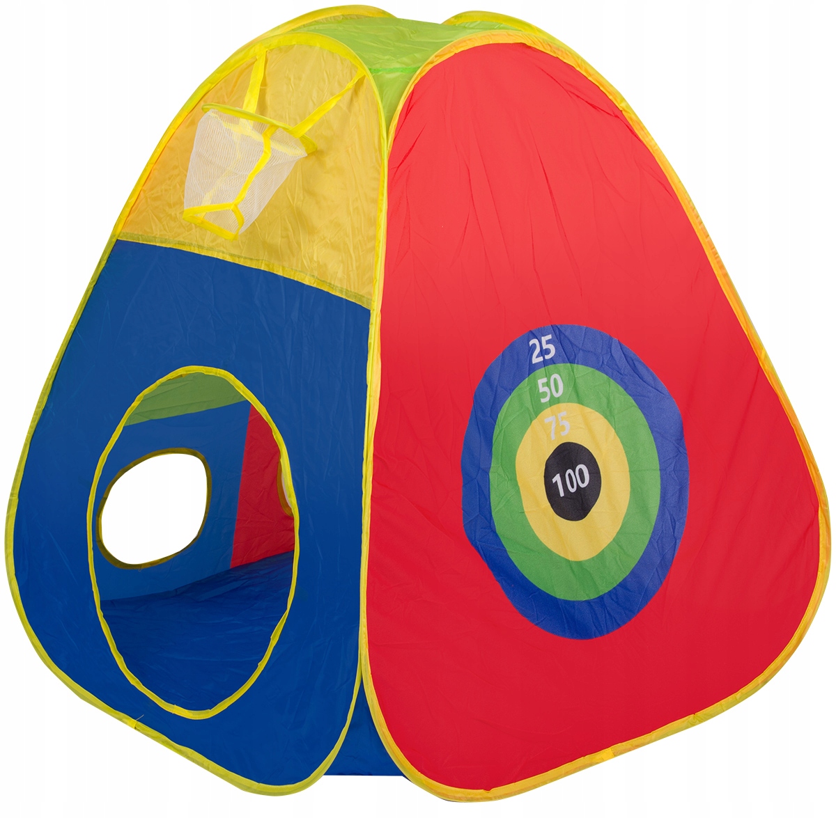 - палатка с 2 входами, мишенью для мячей на липучке и стенкой с цветными отверстиями для прицеливания шариков одного цвета