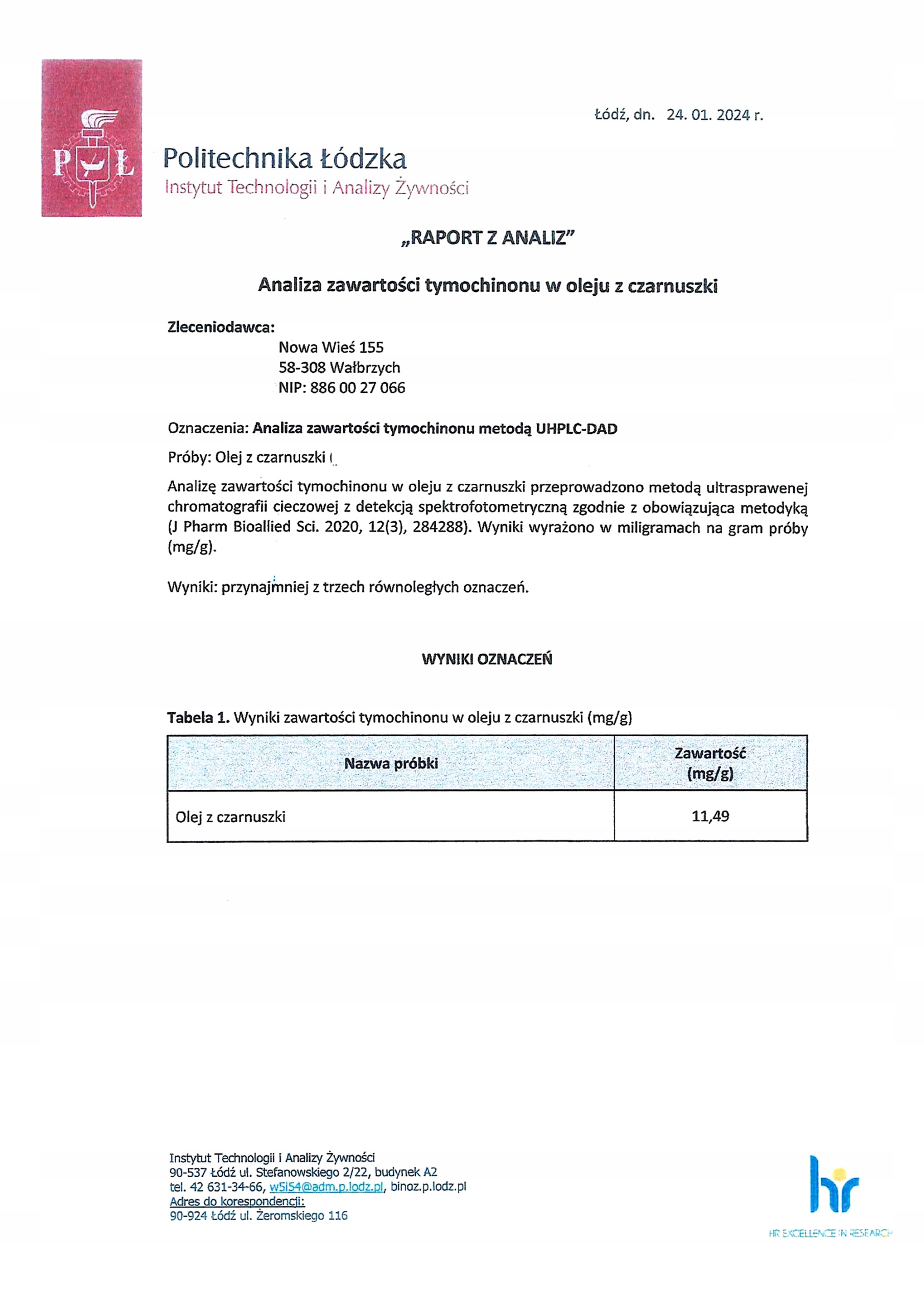 Масло черного тмина олини содержит 11,49 мг/г тимохинона. Оно также является источником кислот омега-3 и омега-6. Подтверждено исследованием Лодзинского технологического университета, январь 2024 г.
