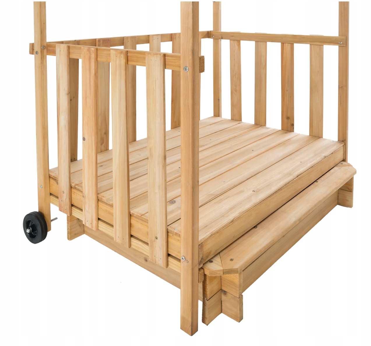 Вы ищете безопасное, функциональное и очаровательное место для игр вашего ребенка? Эта песочница с верандой и крышей – это сочетание отличного развлечения и защиты от солнца, дождя и нежелательных гостей – например, от гостей. животные.