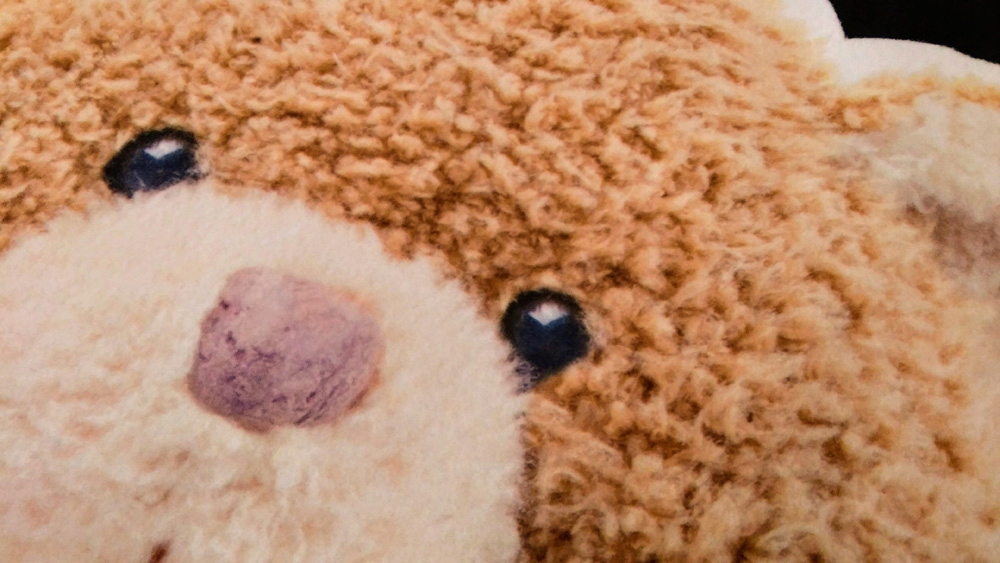 Большая наклейка выглядит как настоящий плюшевый мишка. Ниже приведена наклейка крупным планом — реальные фотографии.