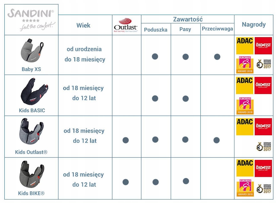 Продукция SANDINI имеет положительную рекомендацию института ADAC и получила оценку «очень хорошо» в тестах престижного журнала Öko-Test.