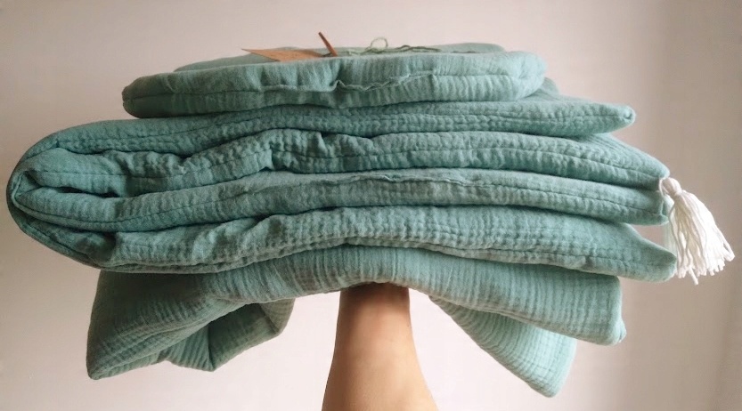 Постельное белье выполнено из очень мягкого и нежного хлопкового МИСЛИНА ДВОЙНОЙ МАРЛИ. Она очень легкая и приятная на ощупь.