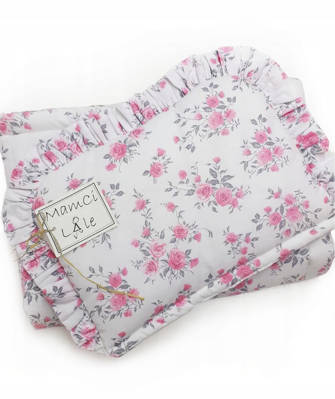 Комплект состоит из пододеяльника с вшитым антиаллергенным наполнителем и подушки с рюшем. Все выполнено из хлопка премиум-класса высочайшего качества, который благодаря своему мягкому и приятному на ощупь весу идеально подходит для колясок, колыбелей и детских кроваток.