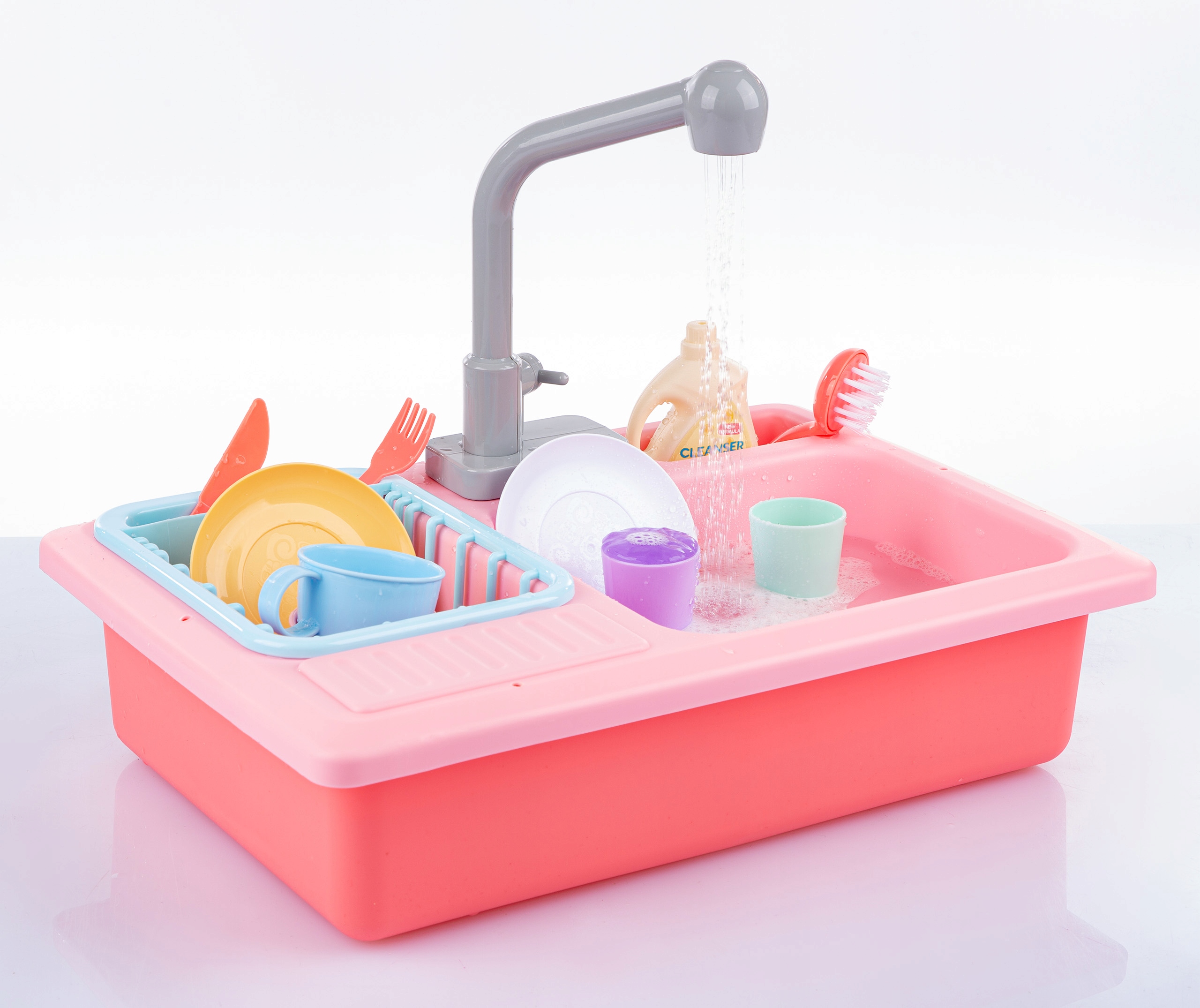 Раковина с настоящим краном с проточной водой и аксессуарами. Ребенок может мыть посуду, игрушка развивает воображение, учит ответственности и порядку.
