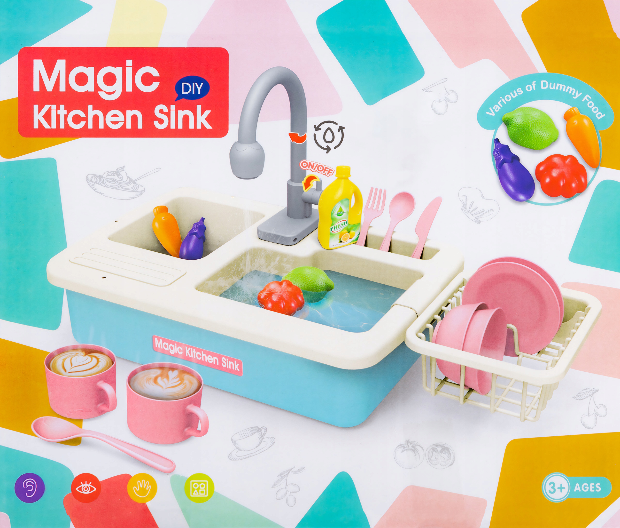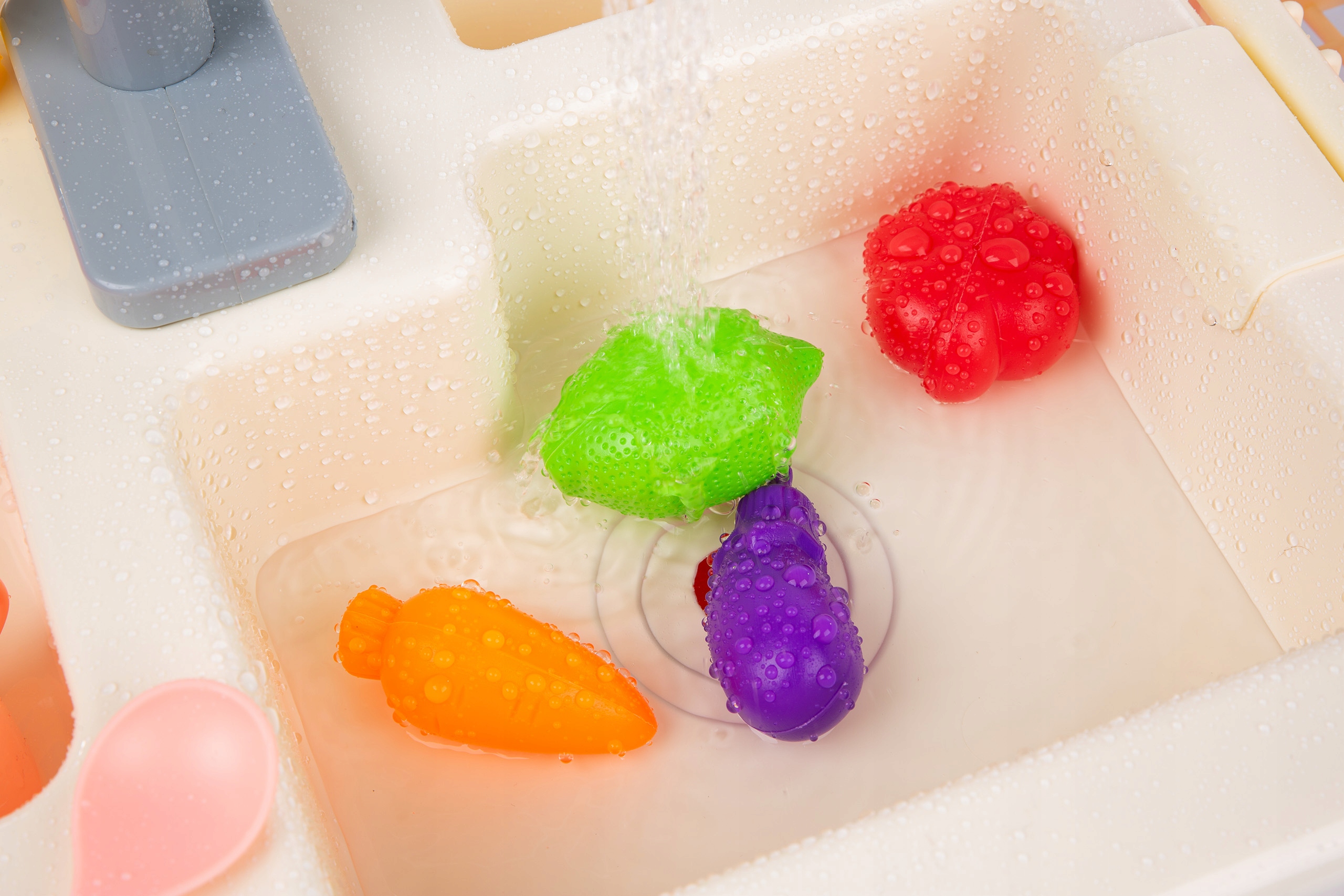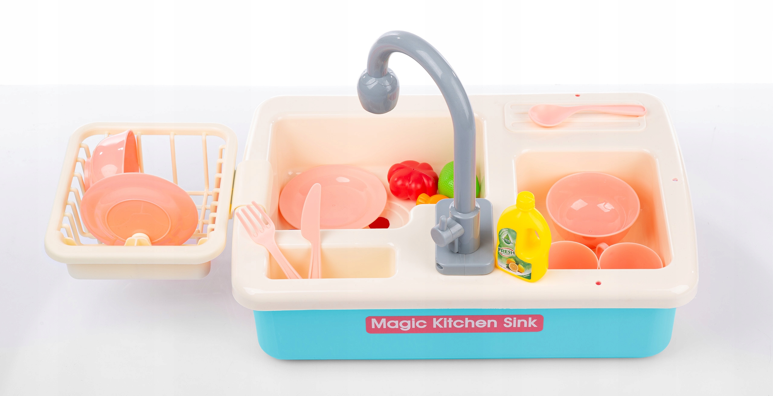 Раковина с настоящим краном с проточной водой и аксессуарами. Ребенок может мыть посуду, игрушка развивает воображение, учит ответственности и порядку.