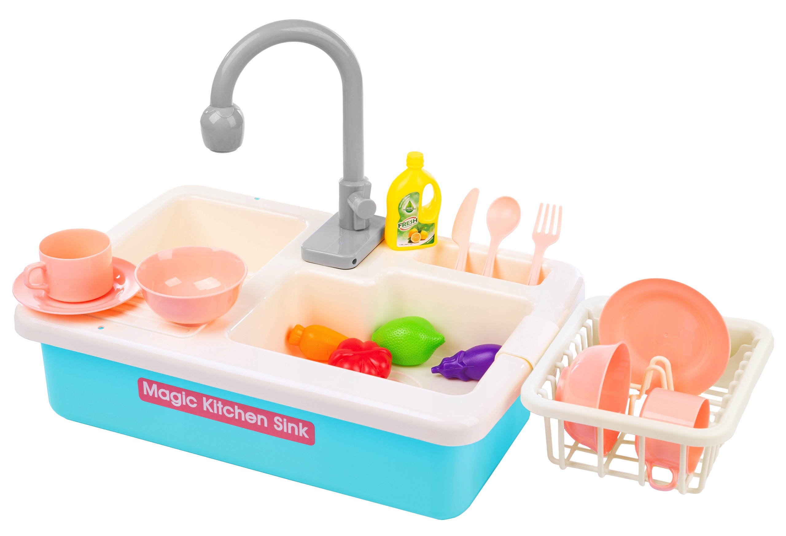 Раковина с настоящим краном с проточной водой и аксессуарами. Ребенок может мыть посуду, игрушка развивает воображение, учит ответственности и порядку.
