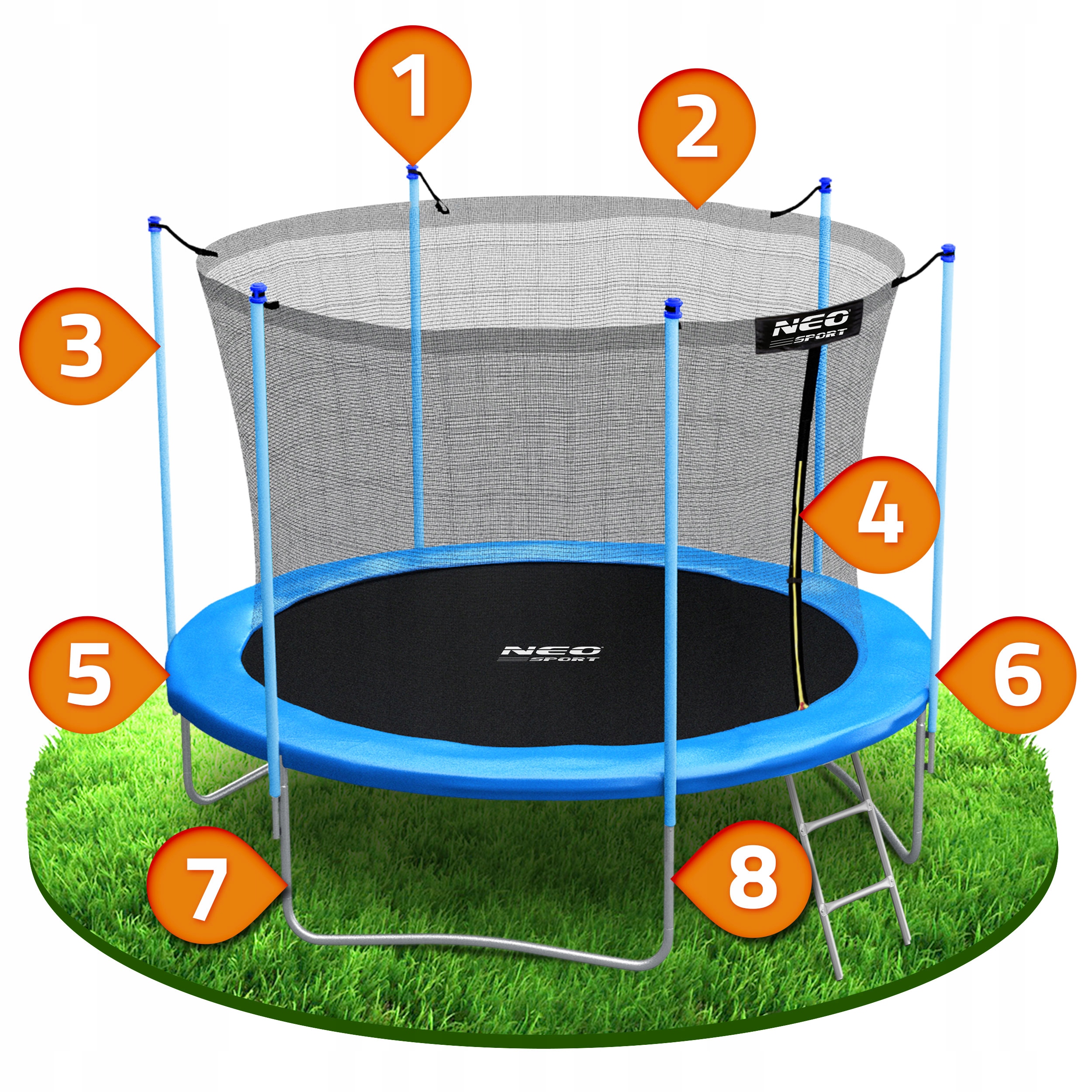 - В комплект входят: садовый батут, защитная сетка, металлическая лестница, руководство пользователя.