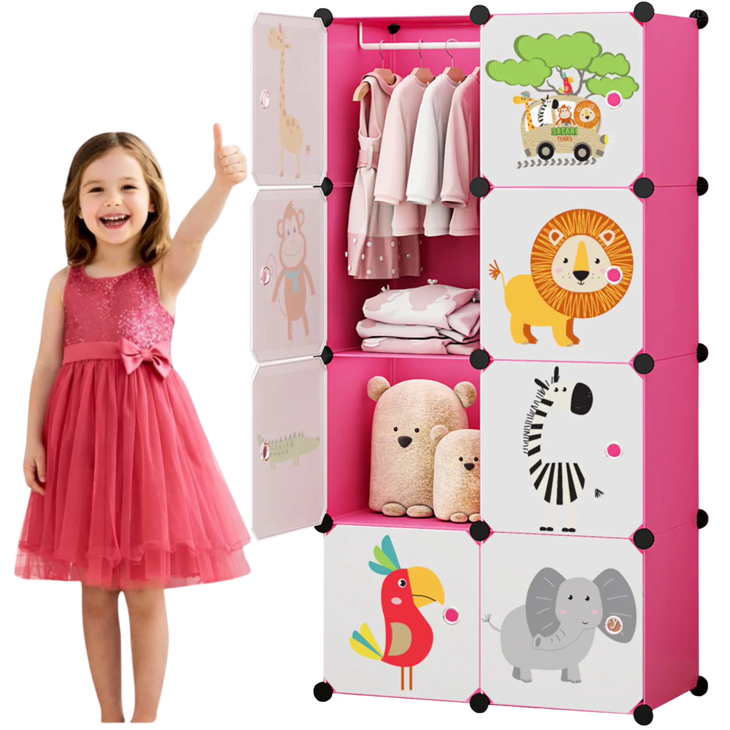 ДЕТСКИЙ ГАРДЕРОБ КНИЖНЫЙ ШКАФ МОДУЛЬНАЯ ПОЛКА ДЛЯ ОБУВИ И ОДЕЖДЫ, РОЗОВАЯ, 8 МОДУЛЕЙ