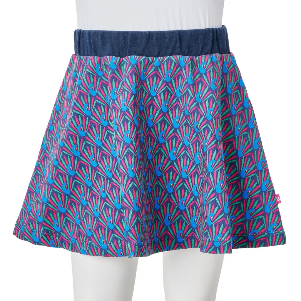 Эта детская юбка с расклешенной порезом имеет эластичную ленту на талии. Он украшен рисунком в перьях павлина по всей поверхности. Эта короткая юбка изготовлена из мягкого материала, содержащего 92% хлопка и 8% эластана, что делает ее удобной и воздушной.