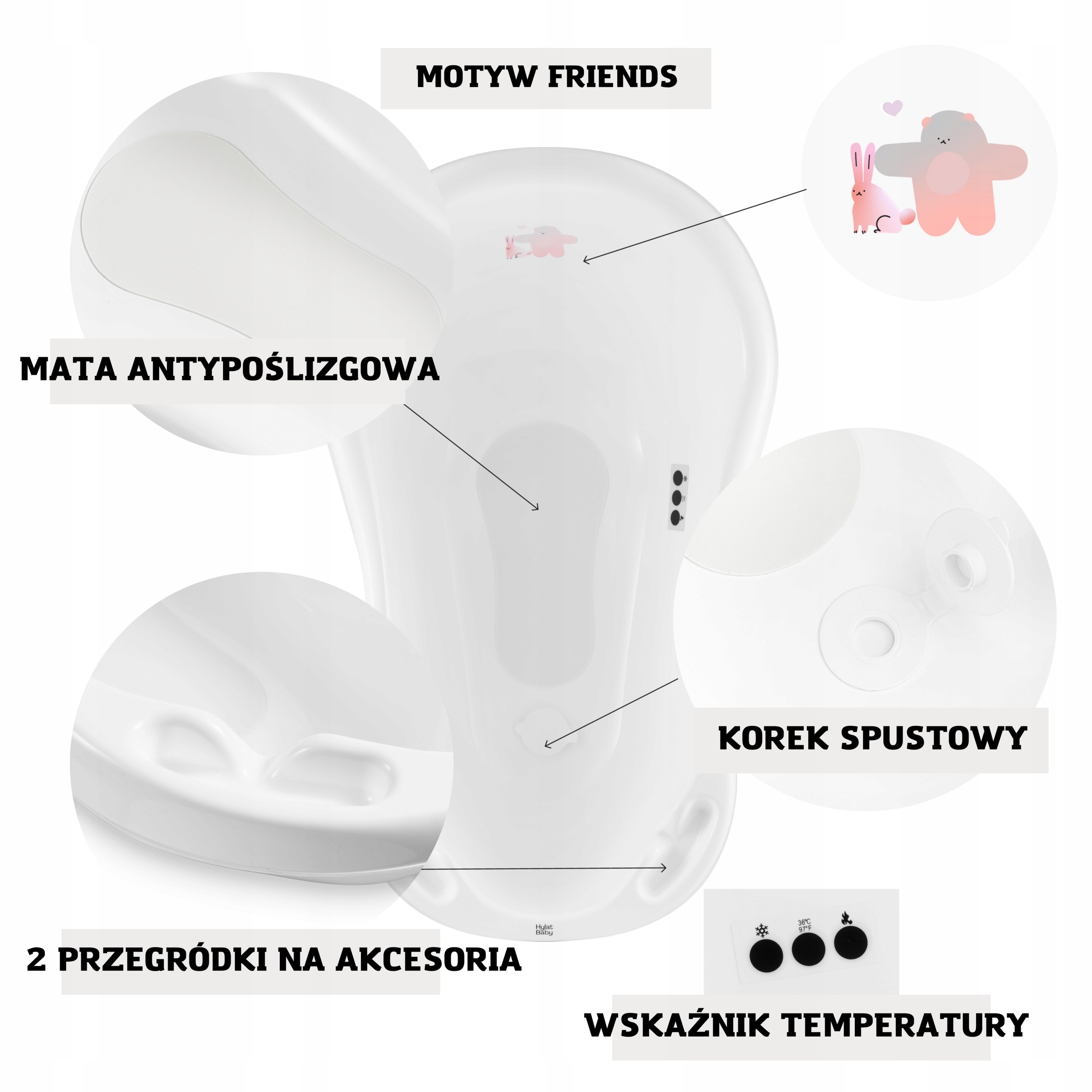- безопасность - анти -аллергический, свободный от BPA, без края и долговечной пластиковой бани.