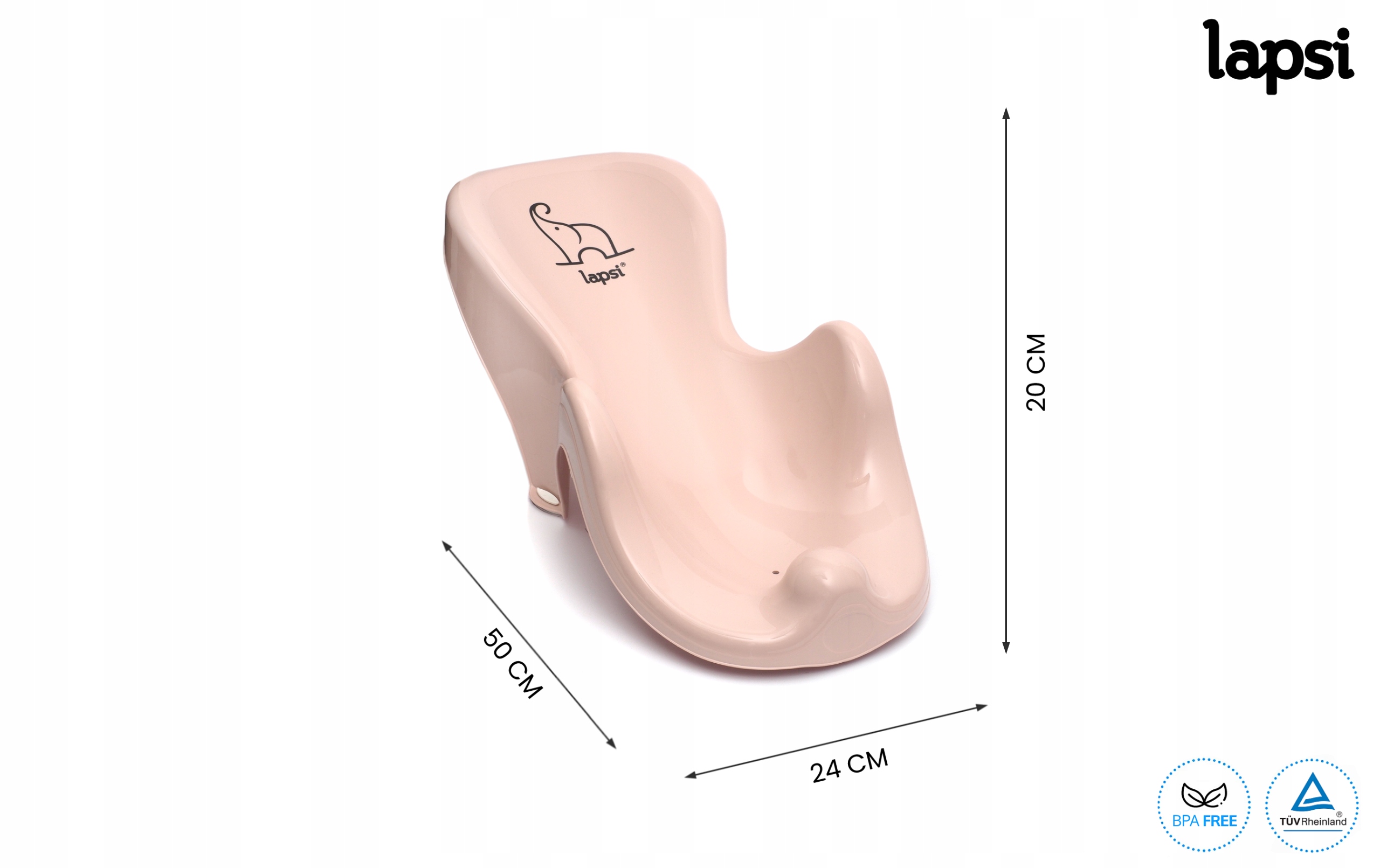 Анатомическая форма сиденья обеспечивает полный комфорт во время использования. Резиновые элементы на ножках предотвращают перемещение сиденья в детской или большой ванне. Продукт безопасен и стабилен.