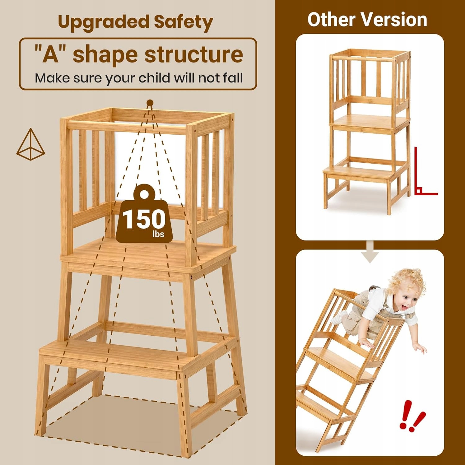 Большая вместимость — этот кухонный помощник для детской комнаты подходит для малышей от 18 месяцев до 3 лет и выдерживает 68 кг. Фактически, они прошли профессиональные испытания и благодаря своей устойчивой конструкции могут выдержать вес взрослого человека. Пожалуйста, не волнуйтесь.