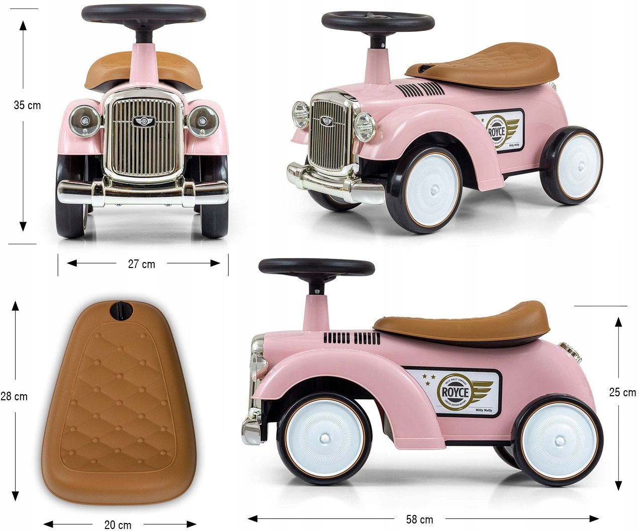 Создание вождения поездки royce Милли Малли - это подарочная упаковка, хранящаяся в ретро -характеристиках транспортных средств с самого начала автомобиля. Royce Apan посвящен всем детям, которые могут сидеть самостоятельно. Автомобиль можно использовать как в комнате, так и на открытом воздухе, и на прогулке вы сделаете время вашего ребенка более приятным.