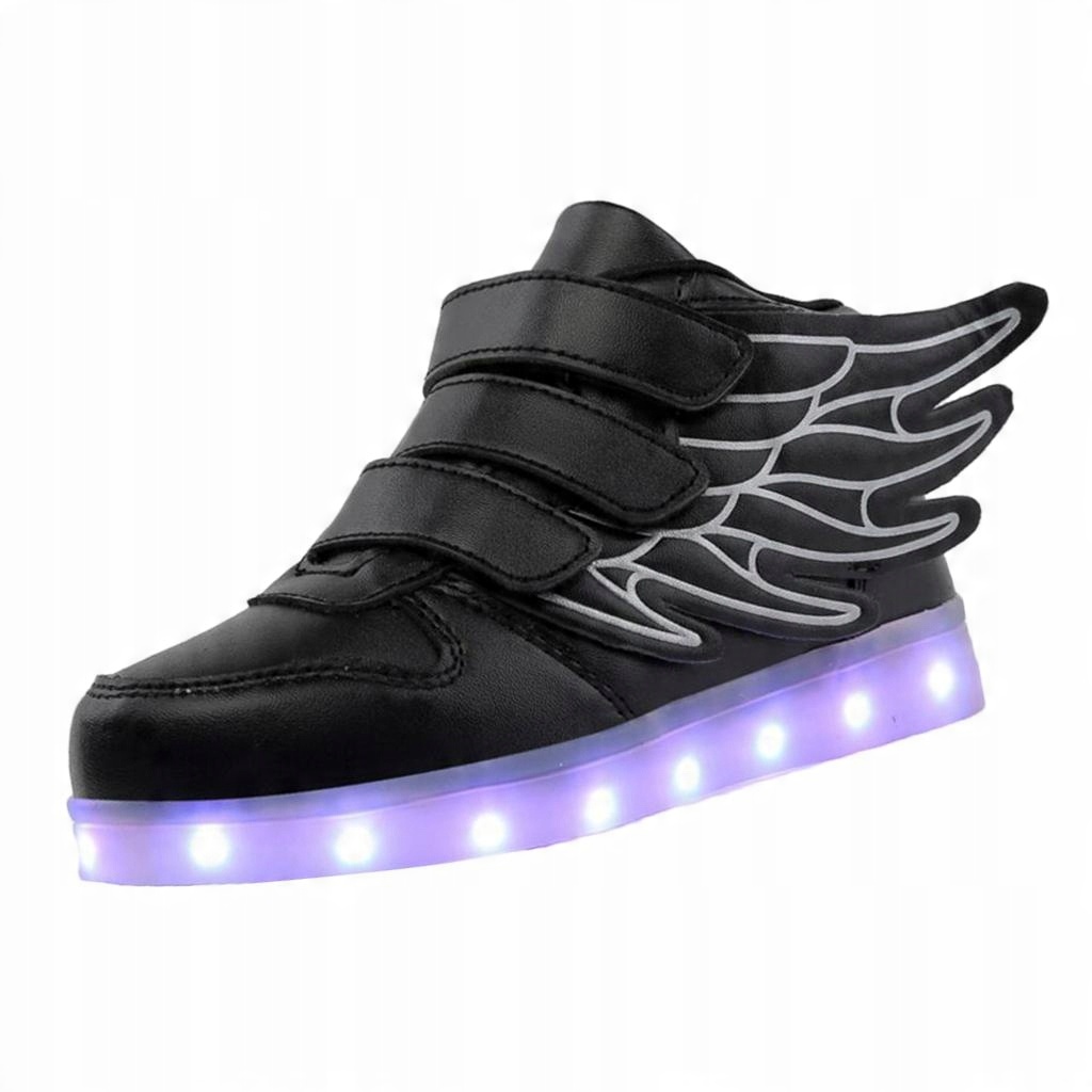 Дитяче 11-кольорове світлодіодне взуття Кросівки USB, чорні, чорні