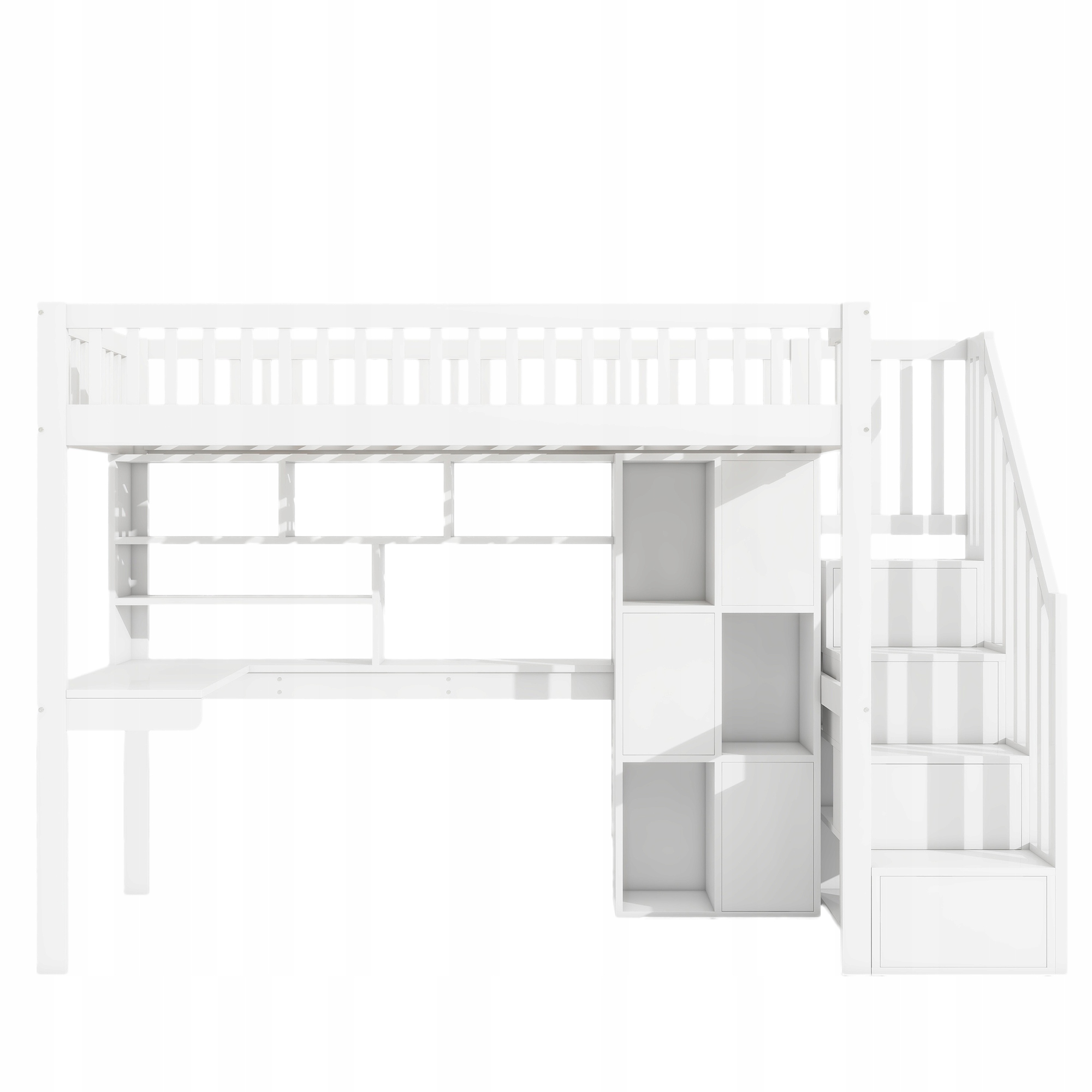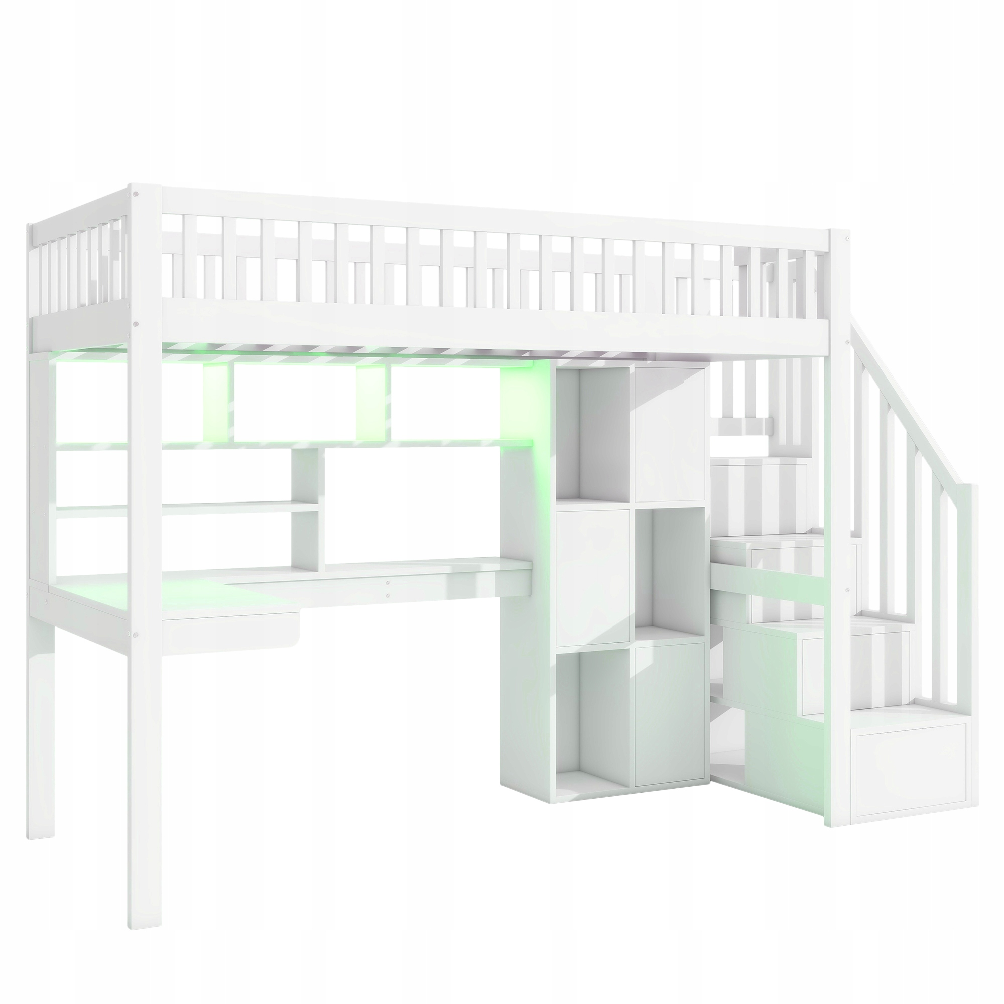 двухъярусная кровать, 90*200 см, пульт дистанционного управления, лестница хранения, полки, хранение, стол, без матраса, белый