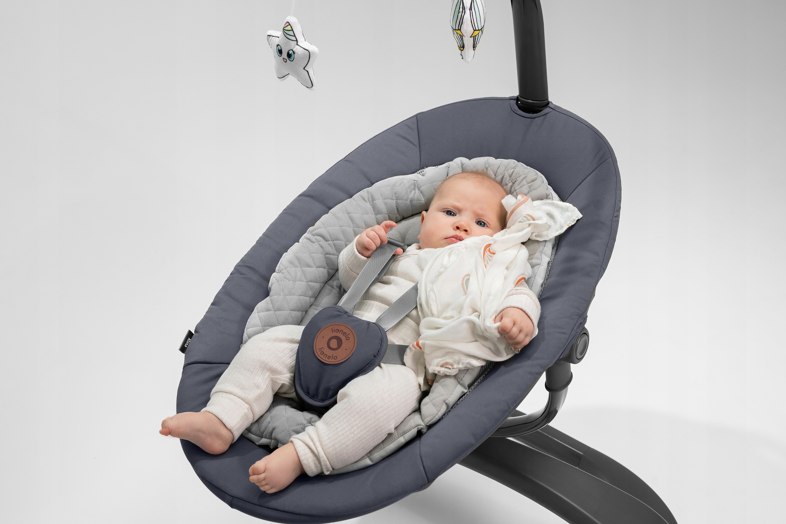 Вращающееся сиденье качалки Lionelo Rina позволяет не только менять направление качания, но и регулировать сиденье b> чтобы вы всегда могли поддерживать зрительный контакт с ребенком.