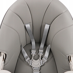 Благодаря 5-точечному ремню безопасности и передним перекладинам ваш ребенок не сможет выпасть из высокого сиденья.