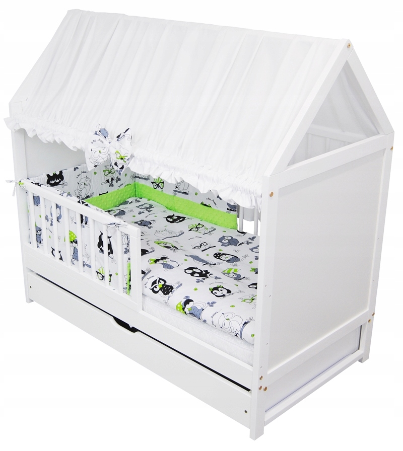 Постельное белье с балдахином, представленное в нашем предложении, прекрасно сочетается с кроватью. Навес образует крышу, благодаря чему кроватка становится отличным игровым уголком.