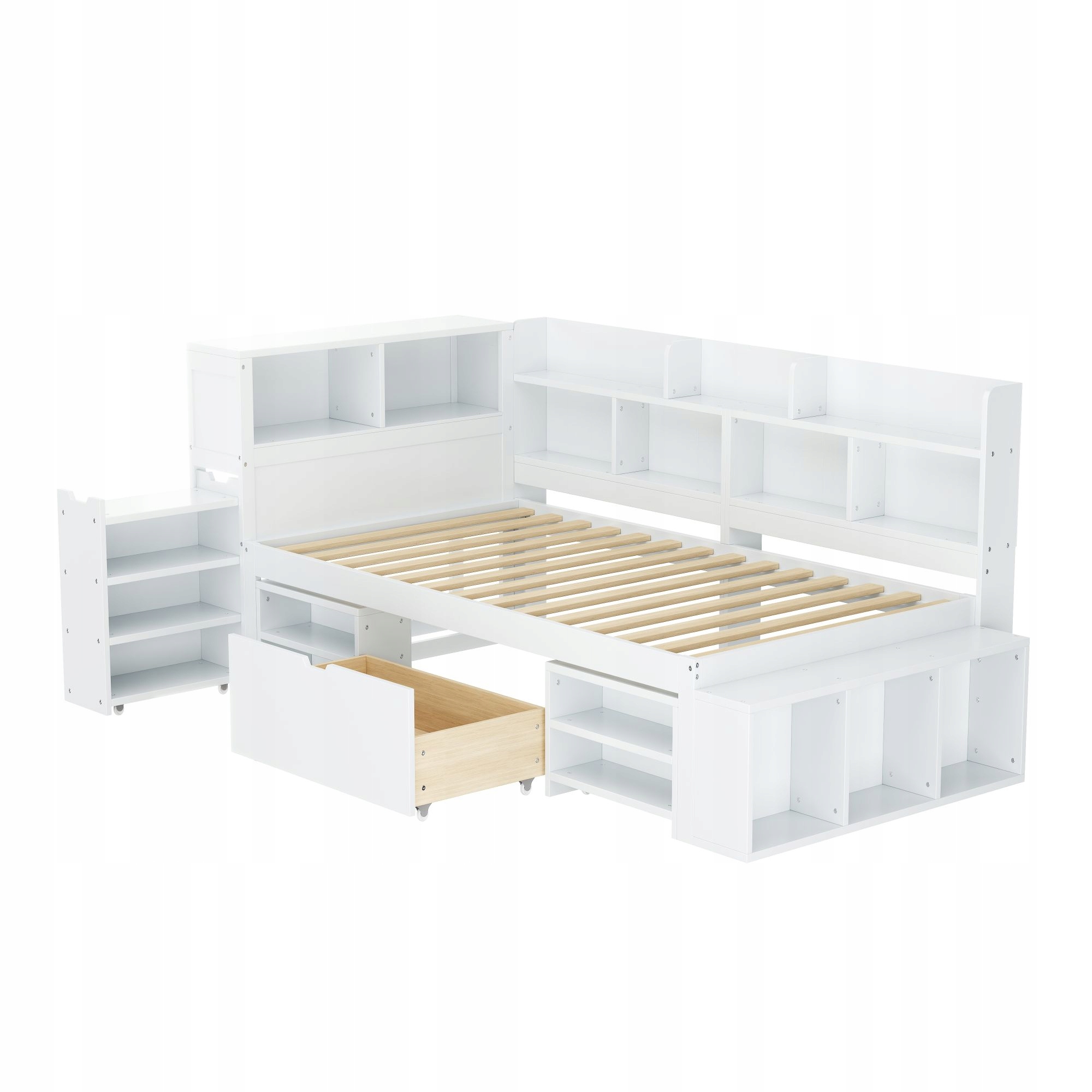 Детская кровать 90*200 см с ящиком и книжным шкафом многофункциональный белый шкаф