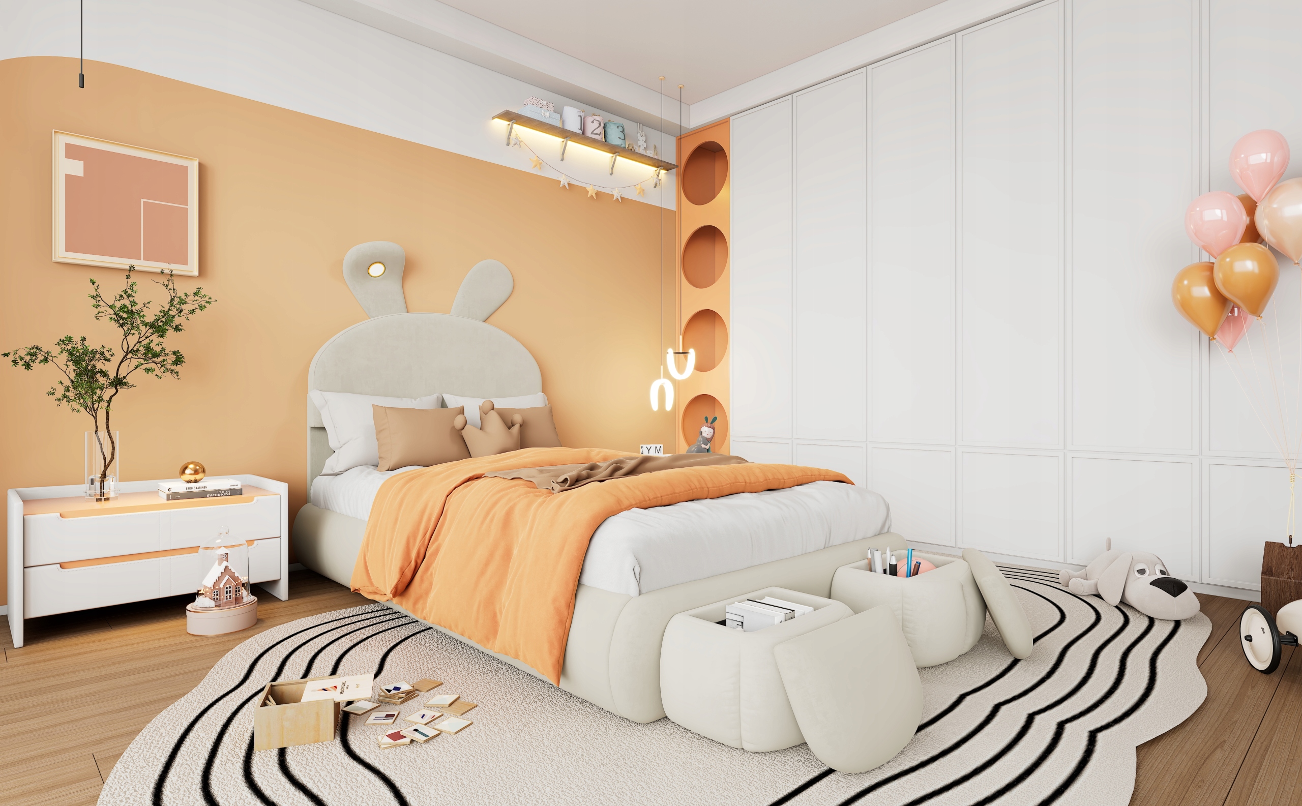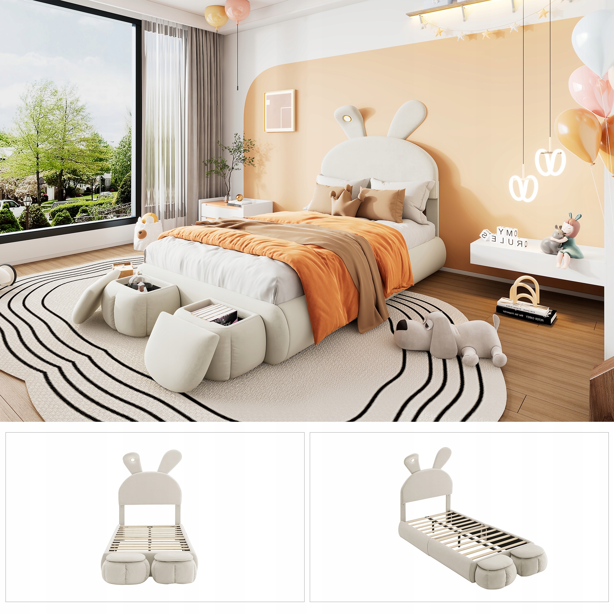 Детская кровать 90x200 см в форме кролика, два стула для хранения