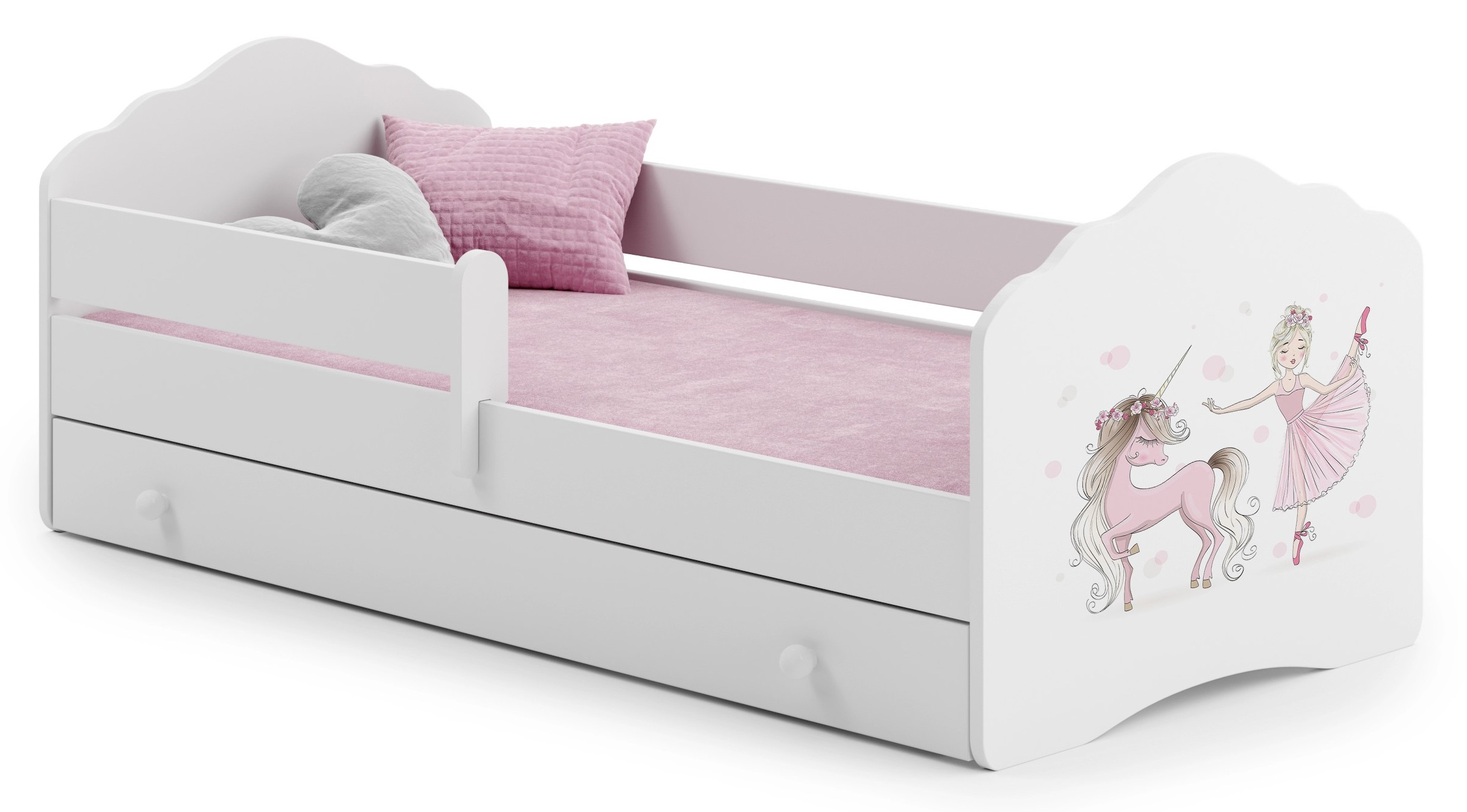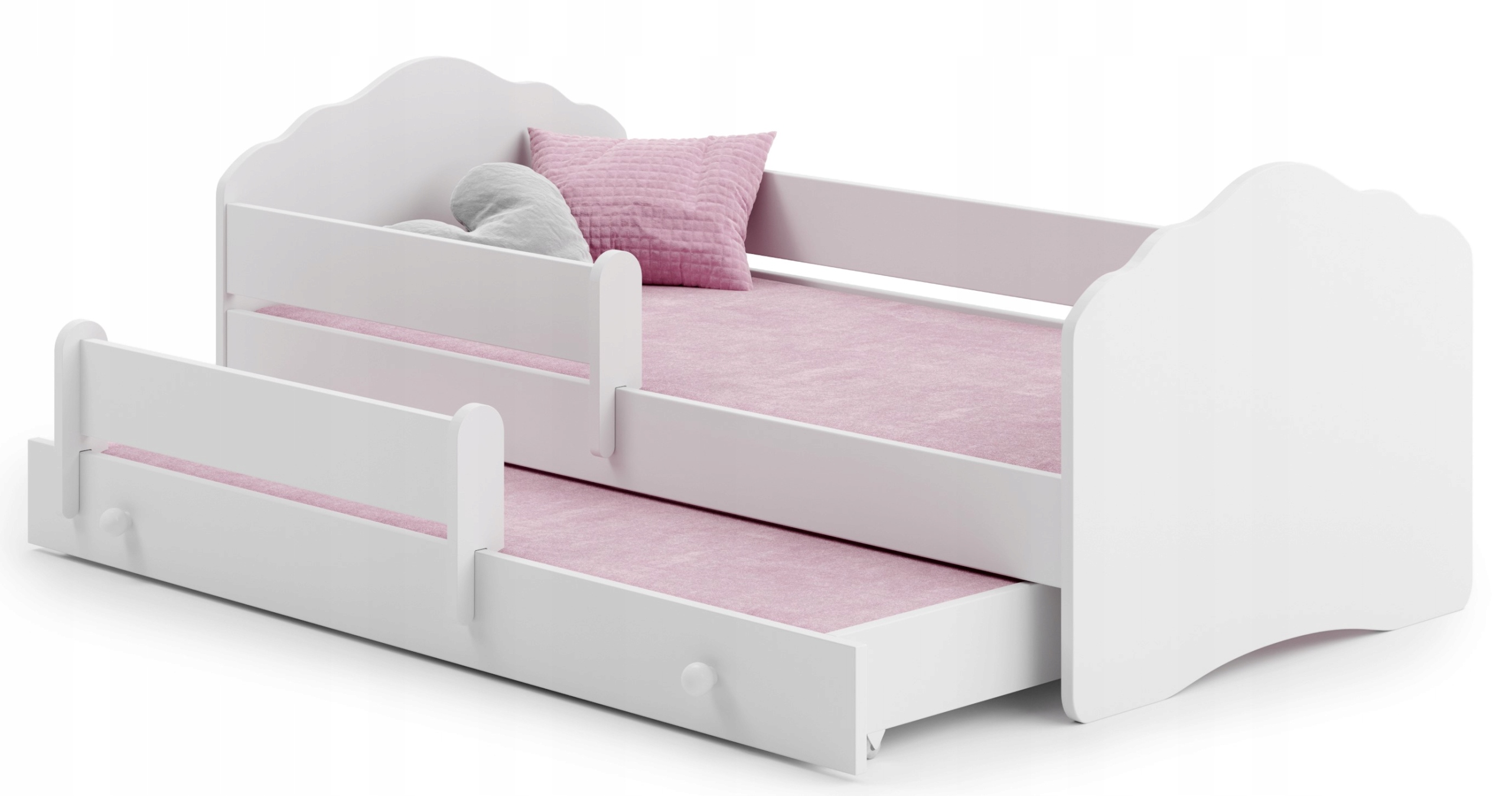 Кровать создана с учетом безопасности вашего ребенка. Прочная конструкция из высококачественной доски и закругленные края исключают риск травм. А перила обеспечивают защиту тем, кто спит чуть бодрее, переворачиваясь с боку на бок. Эта модель также имеет просторный ящик, в котором можно хранить постельное белье, одежду или игрушки — все под рукой.