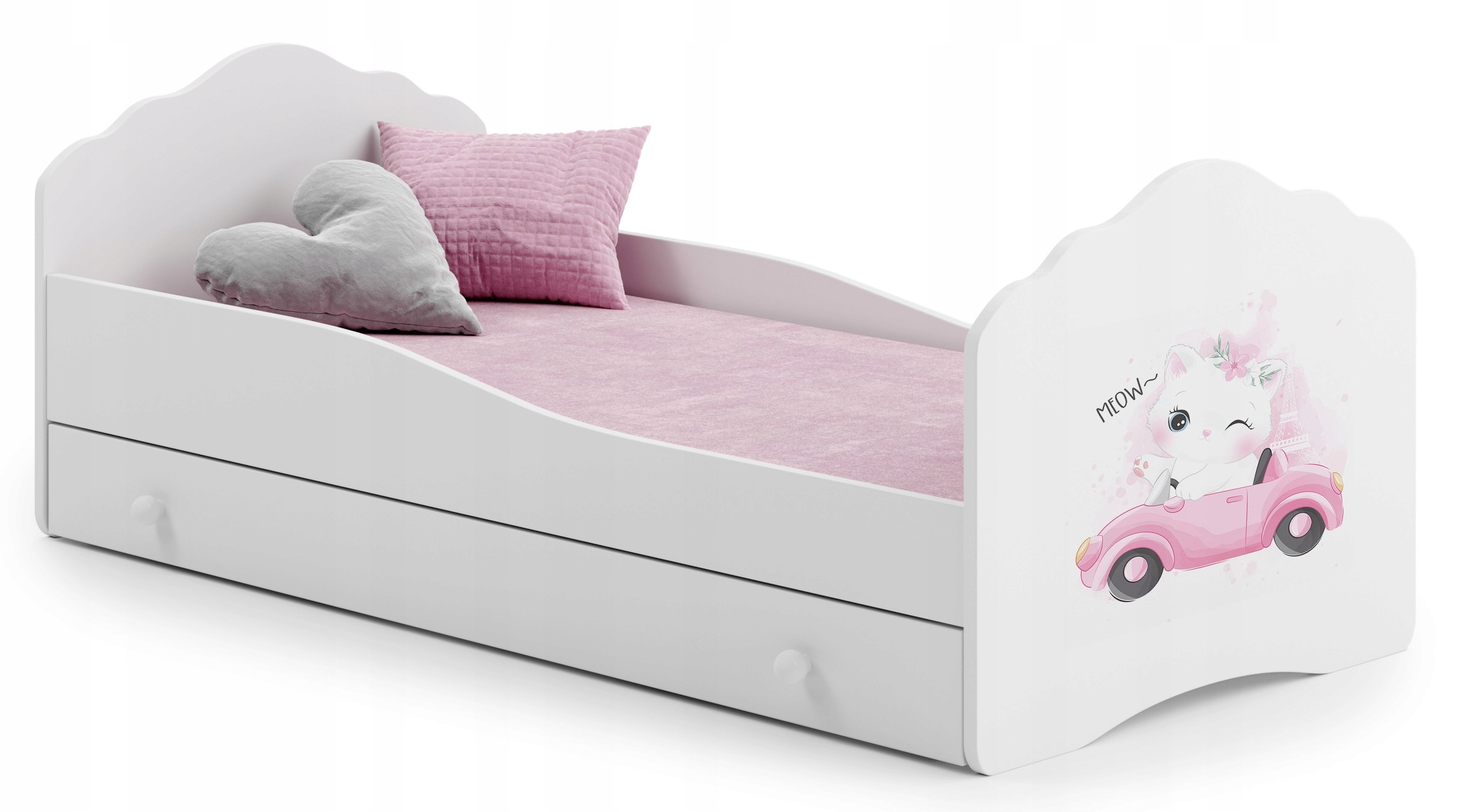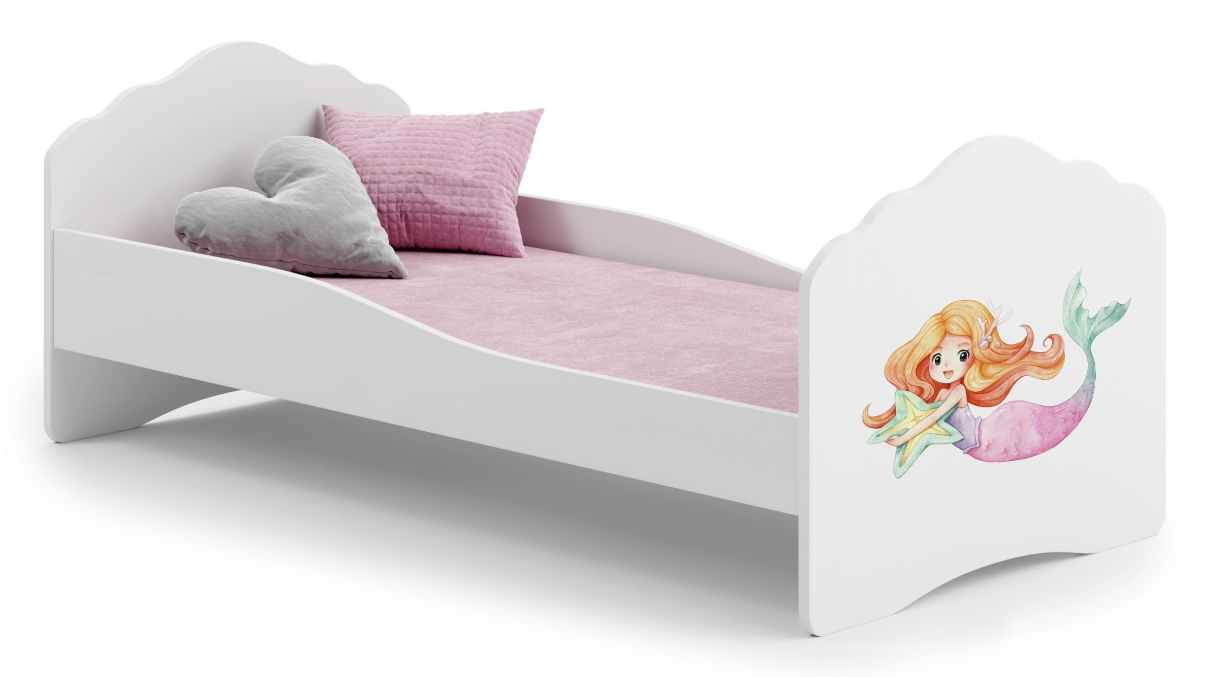 ВОЛНА белая детская кровать для девочки, 140х70, перила+матрас