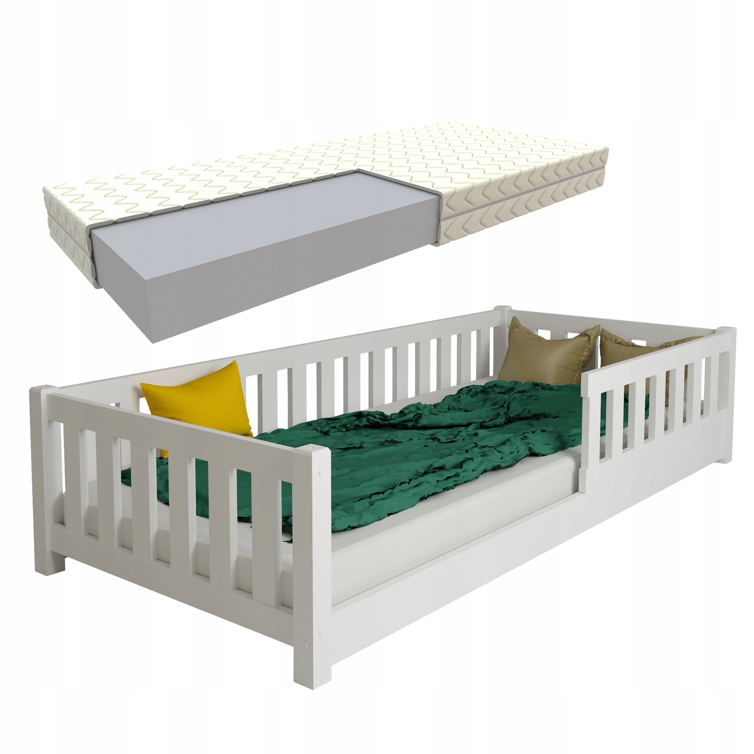 ŁÓŻKO DZIECIĘCE Z MATERACEM LULU 80X160 BIAŁE + STELAŻ MATERAC SOLIDNE