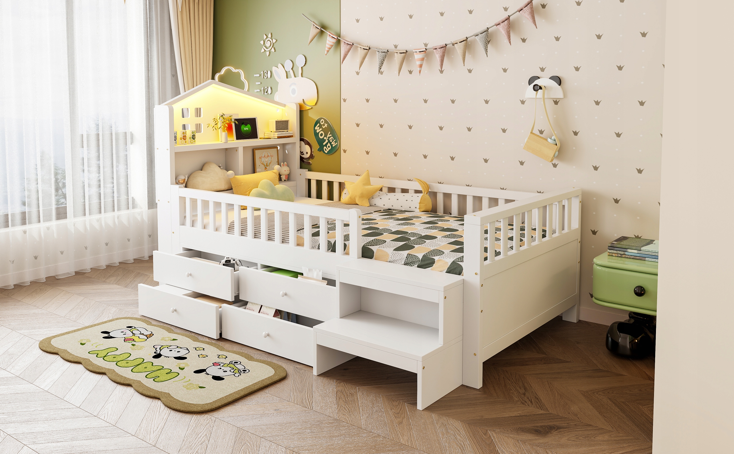 Умное решение для хранения:четыре вместительных ящика под кроватью идеально подходят для хранения игрушек, книг, одежды и постельных принадлежностей, чтобы поддерживать порядок в комнате вашего ребенка.