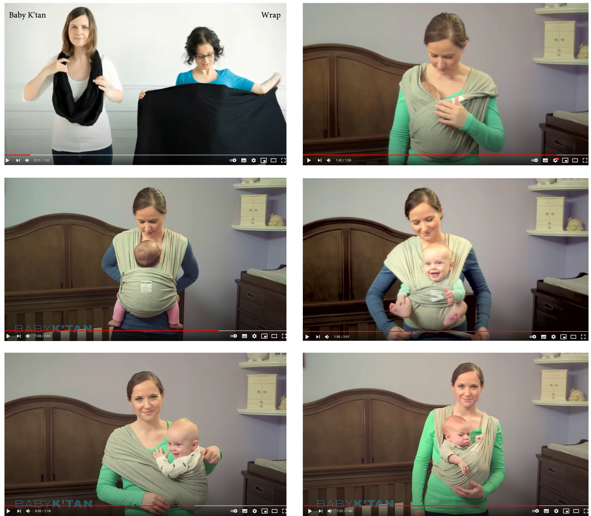 Инструкции по установке Baby K'tan на Youtube: