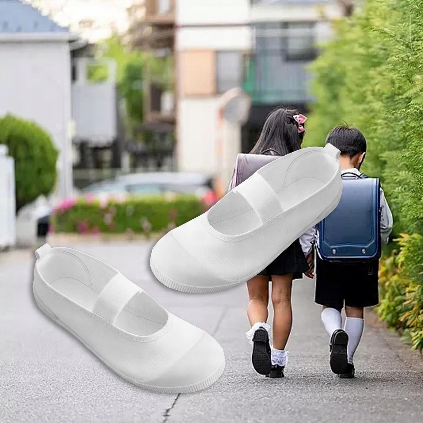 [АНТИСКОЛЬЗЯЩАЯ НИЖНЯЯ] Зубчатая подошва, предотвращающая столкновения и скольжение, делает белую детскую обувь устойчивой и уверенной при ходьбе.