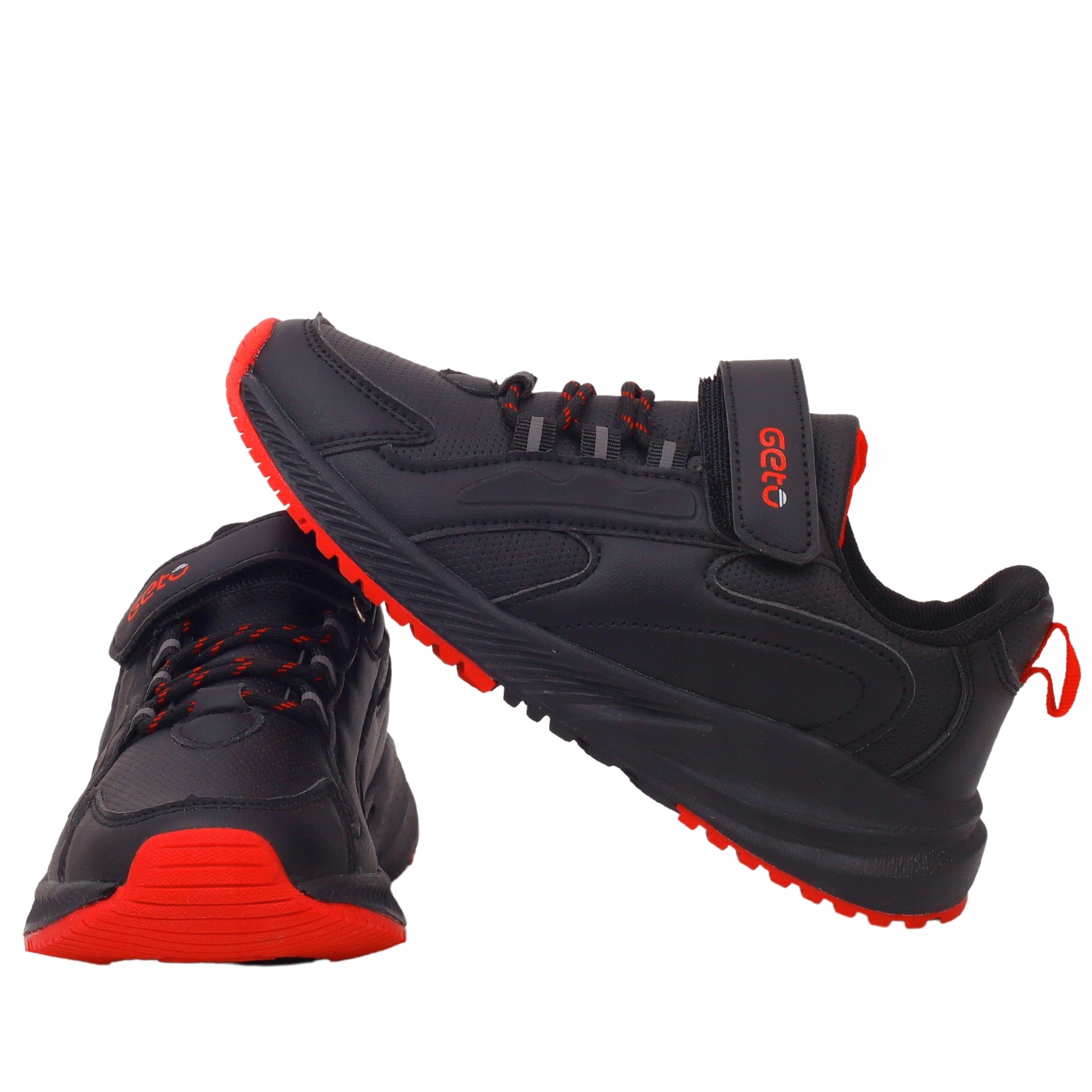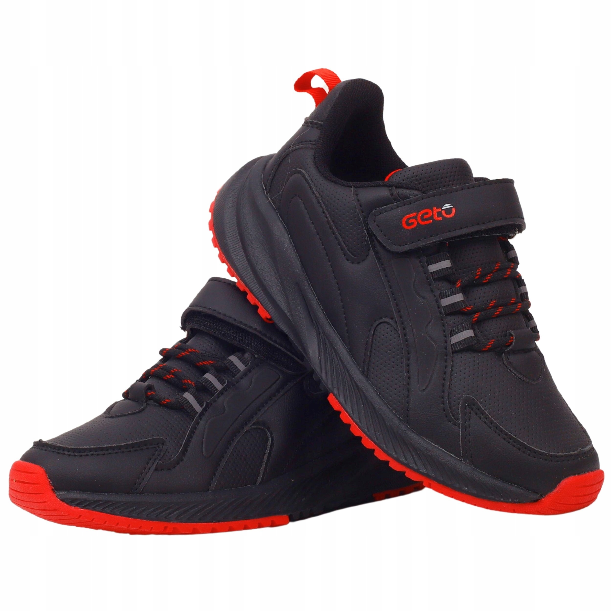 Спортивная обувь для мальчиков на застежке-липучке, черная с красными элементами. Они идеальны в качестве повседневной обуви. Кроме того, они легкие, мягкие и обеспечивают удобство и комфорт использования. Кожаная вставка. Застежка-липучка облегчает надевание обуви.