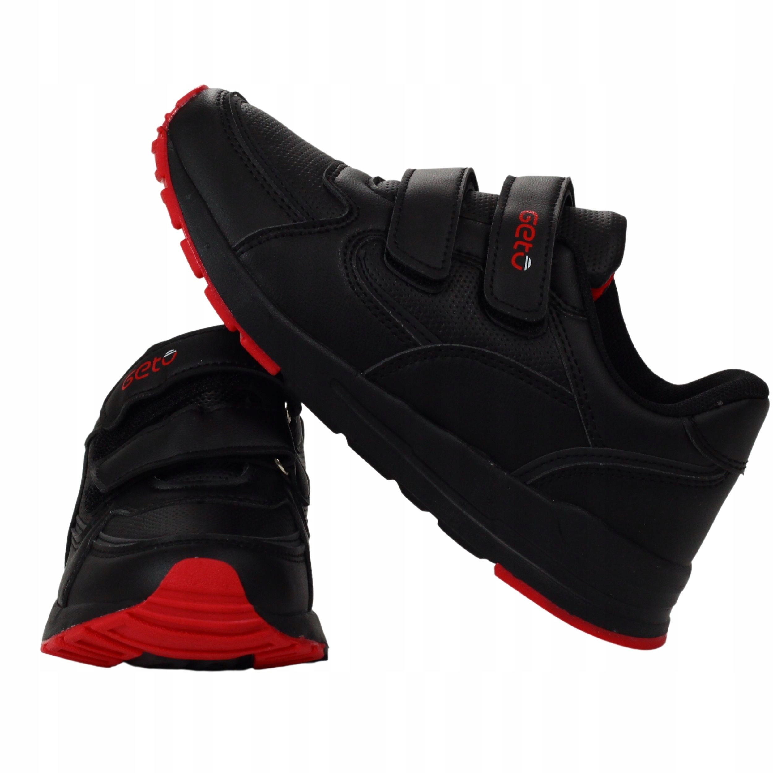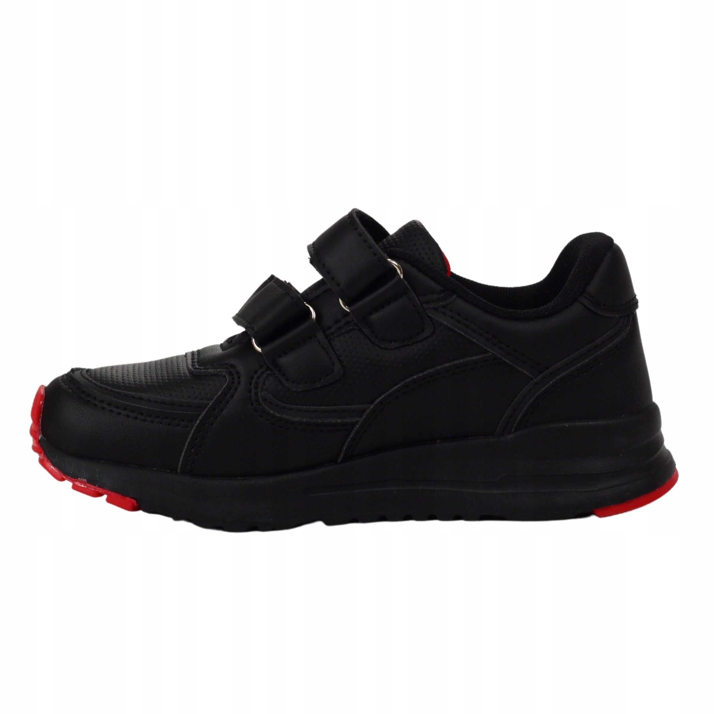 Мальчики с черными туфлями на липучке с красными элементами. Идеально как повседневная обувь. Кроме того, они легкие, мягкие и обеспечивают удобство и комфорт использования. Кожаная вставка. Закрепитель на липучке облегчает поставку на обувь.