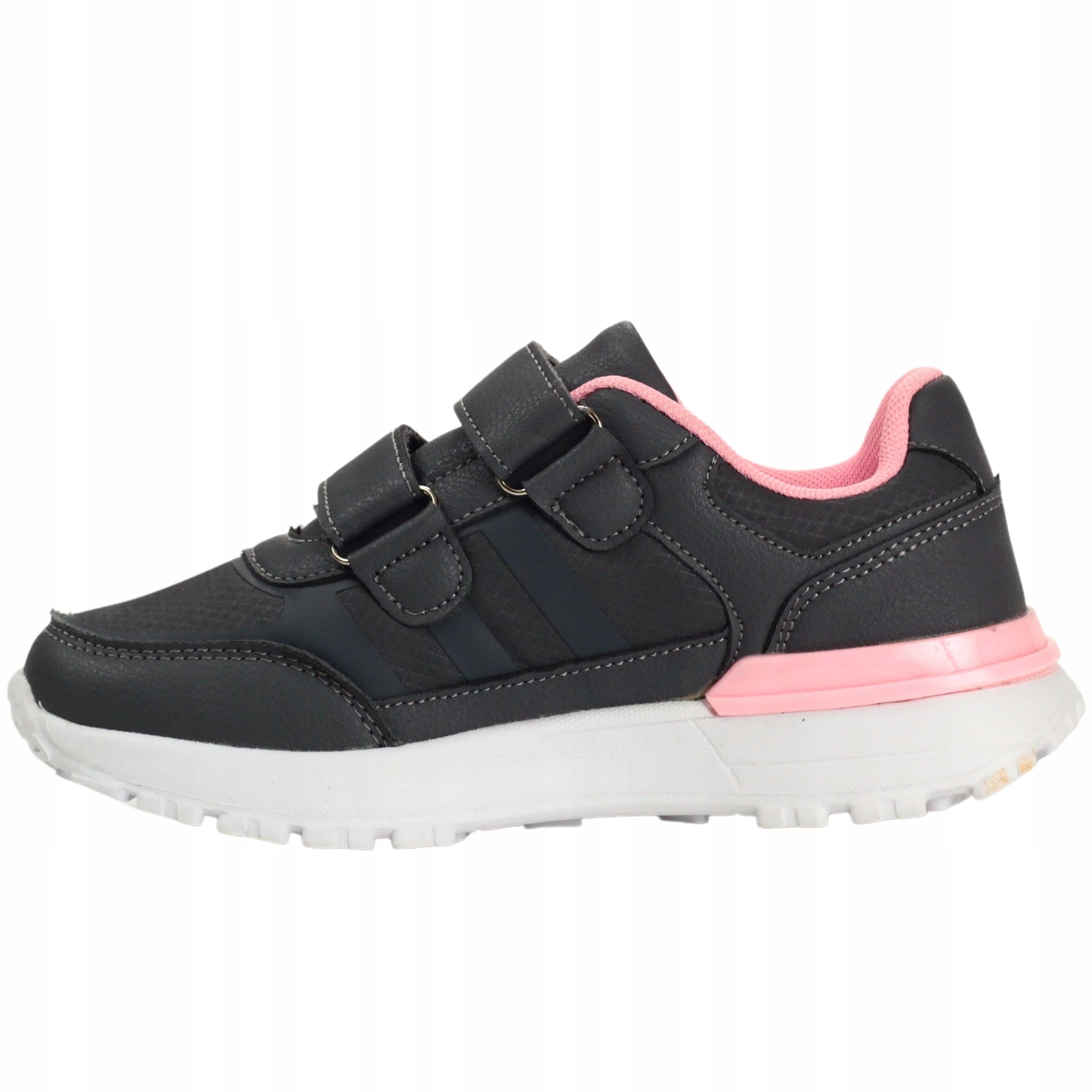 Спортивные туфли для девочек на застежке-липучке, серого цвета с розовыми элементами. Они идеальны в качестве повседневной или школьной обуви – у них белая подошва. Кроме того, они легкие, мягкие и обеспечивают удобство и комфорт использования. Кожаная вставка. Застежка-липучка облегчает надевание обуви.