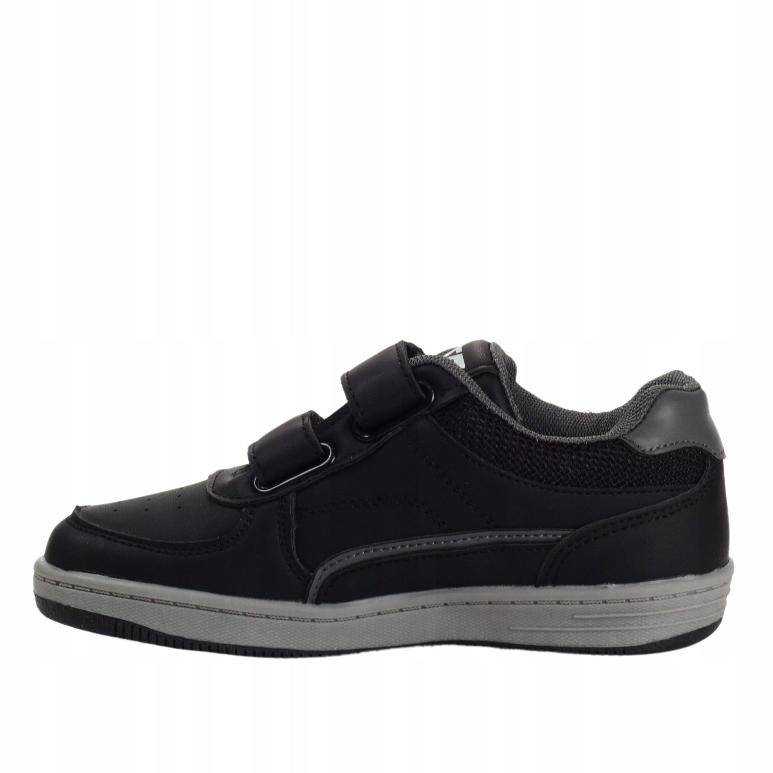 Черные спортивные туфли для мальчиков на застежке-липучке. Они идеальны в качестве повседневной обуви. Кроме того, они легкие, мягкие и обеспечивают удобство и комфорт использования. Кожаная вставка. Застежка-липучка облегчает надевание обуви.