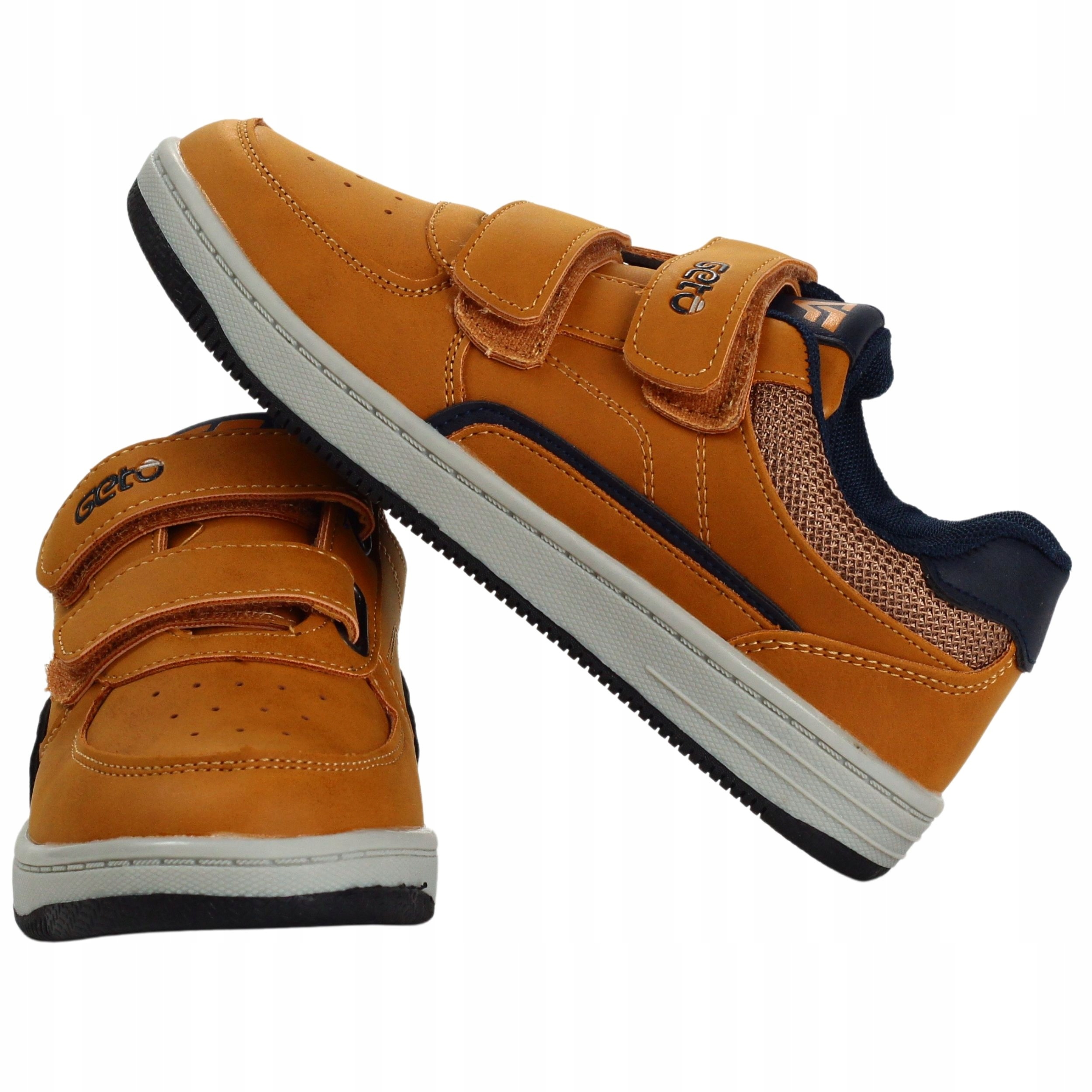 Спортивные туфли для мальчиков на застежке-липучке верблюжьего цвета. Они идеальны в качестве повседневной обуви. Кроме того, они легкие, мягкие и обеспечивают удобство и комфорт использования. Кожаная вставка. Застежка-липучка облегчает надевание обуви.
