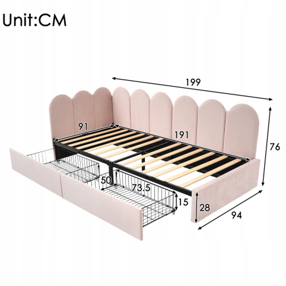 ОДИНОЧНАЯ КРОВАТЬ С ДЕРЖАТЕЛЕМ 90Х190СМ С ЯЩИКАМИ И КАРКАСОМ БЕЗ МАТРАСА