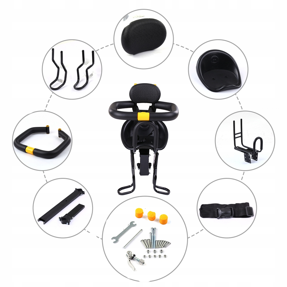 Это безопасное детское велосипедное сиденье, состоящее из прочного пластикового сиденья со спинкой и прочного кронштейна из алюминиевого сплава, достаточно устойчивого, чтобы перевозить вашего ребенка. Благодаря этому седлу вы сможете возить на велосипеде своих детей, что вполне безопасно, комфортно и весело.