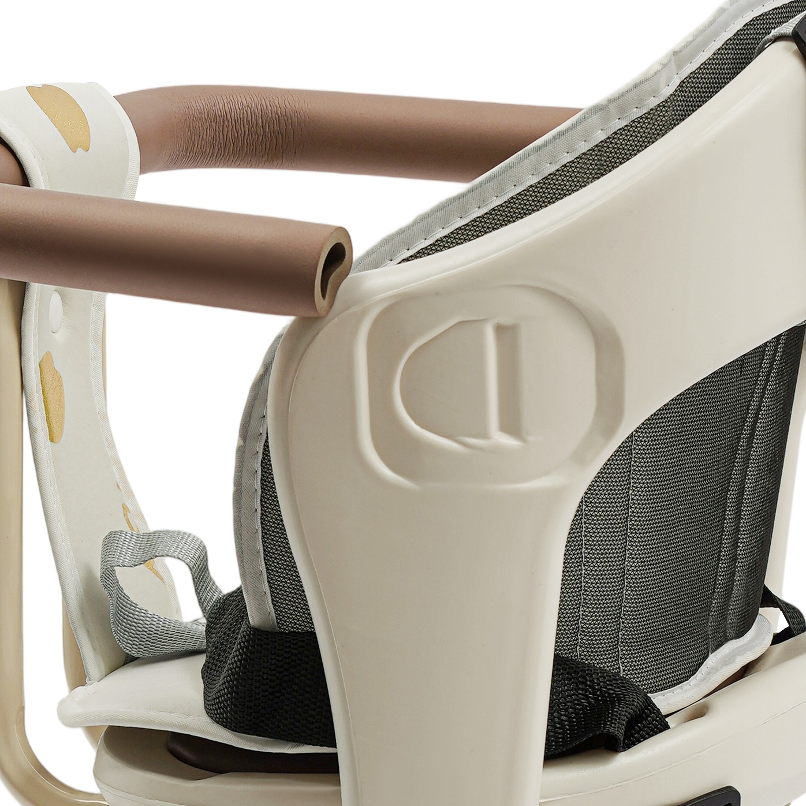 - Высокий уровень безопасности: Полузакрытые поручни с толстым, мягким и удобным покрытием, прочный ремень безопасности и увеличенные подножки обеспечивают безопасность детей и предотвращают их