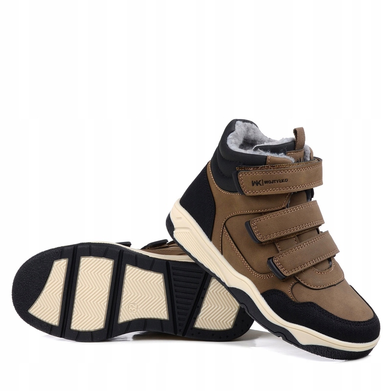 Детские зимние туфли изолировали коричневые Wojtyłko 26104 мальчики для липучки 33