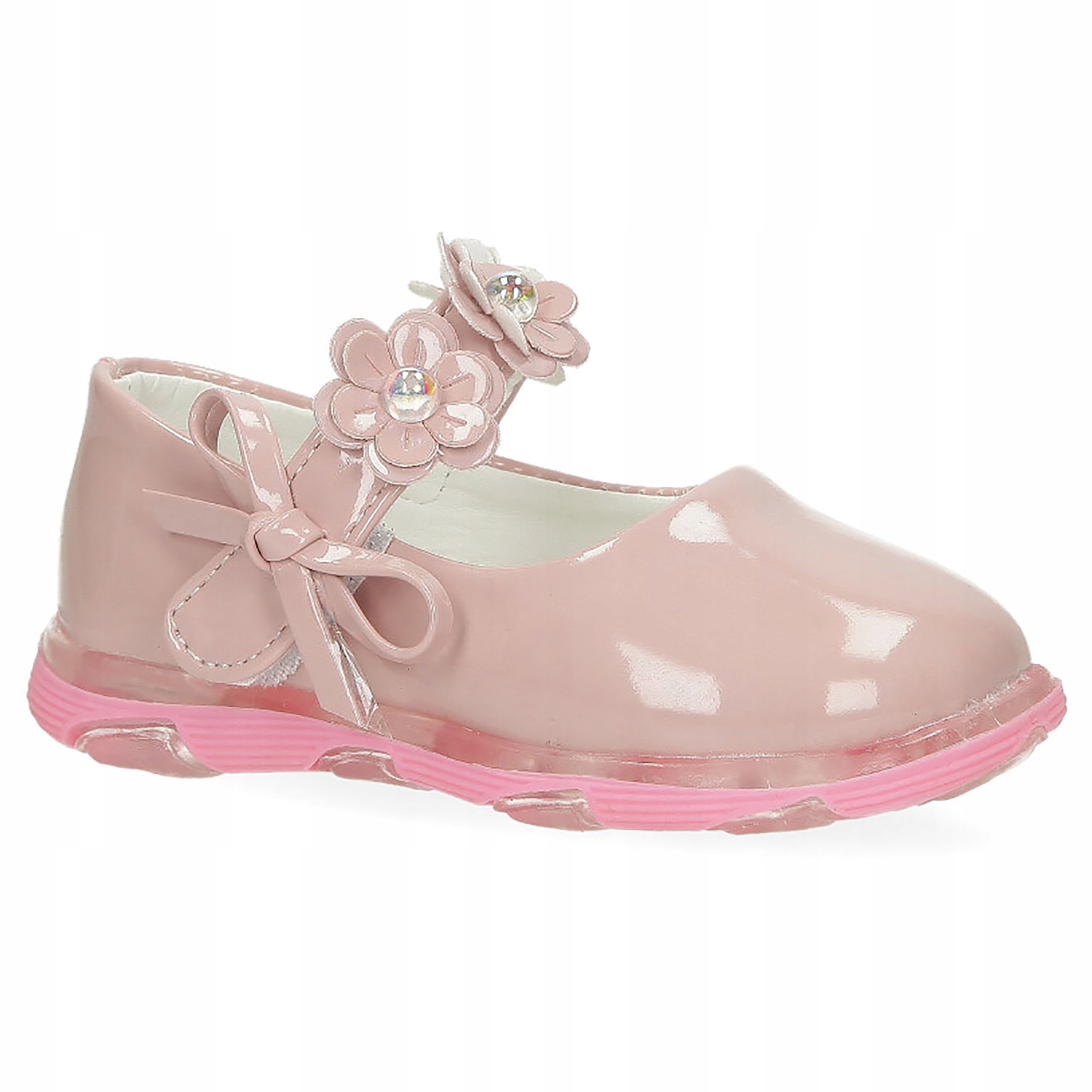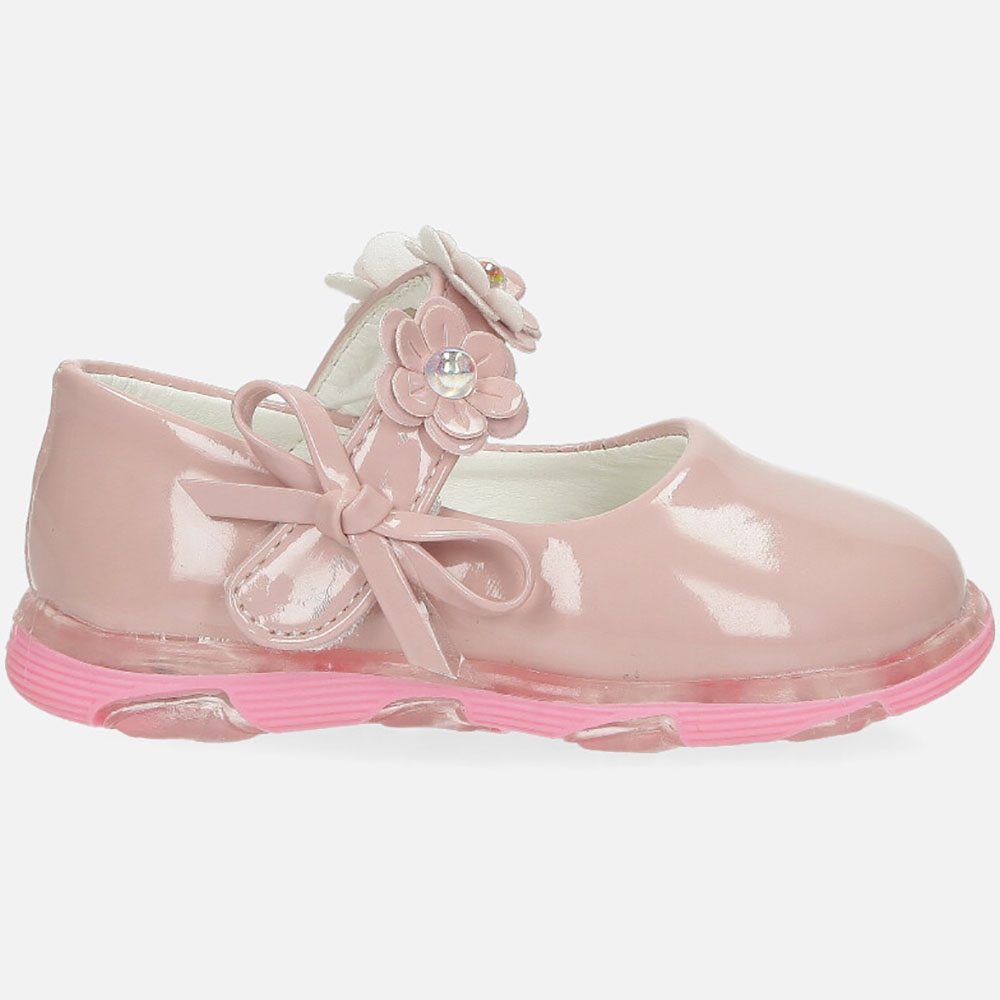 Розовые балерины, лакированные с луком, прикрепленным к липучке A-9