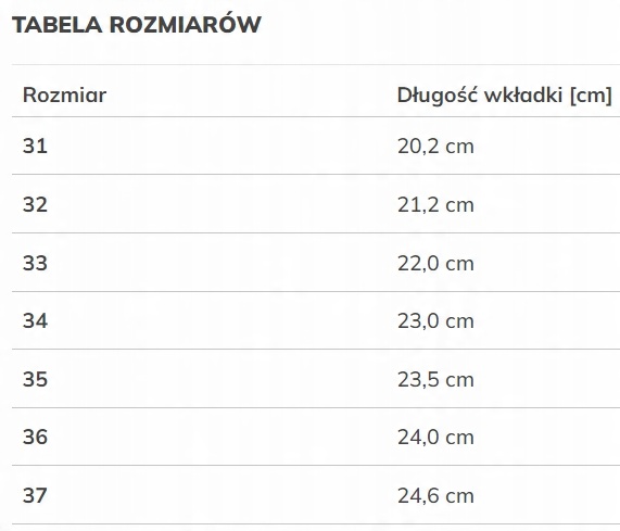 - Размер 31 –Длина стельки [см]: 20,2 см.