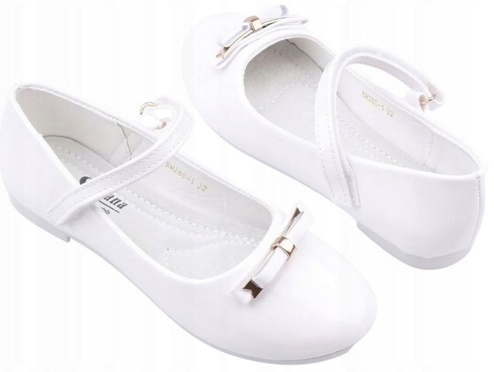 ДИТЯЧІ Балетки з бантом на липучці, LEATHER Communion White r34