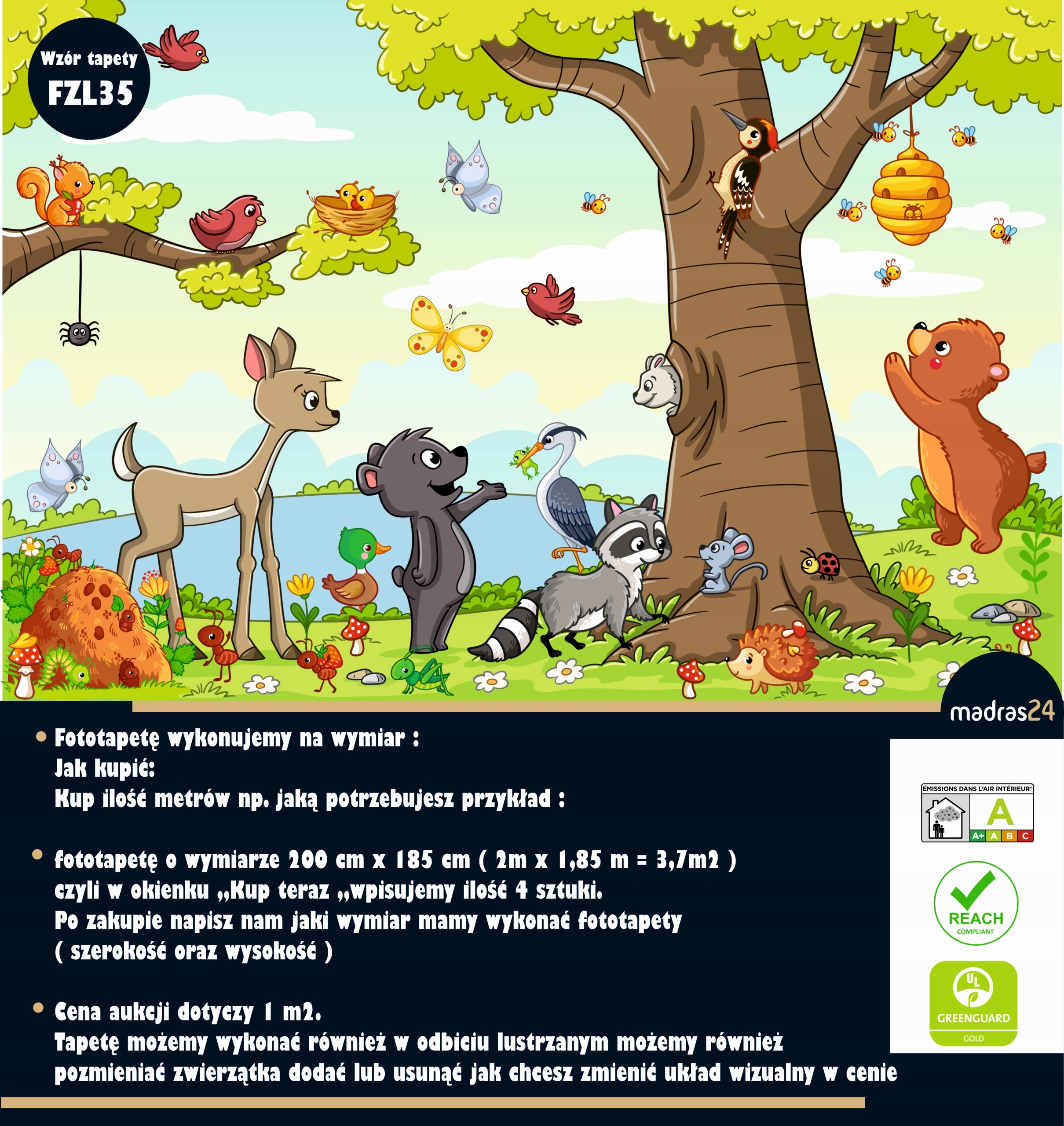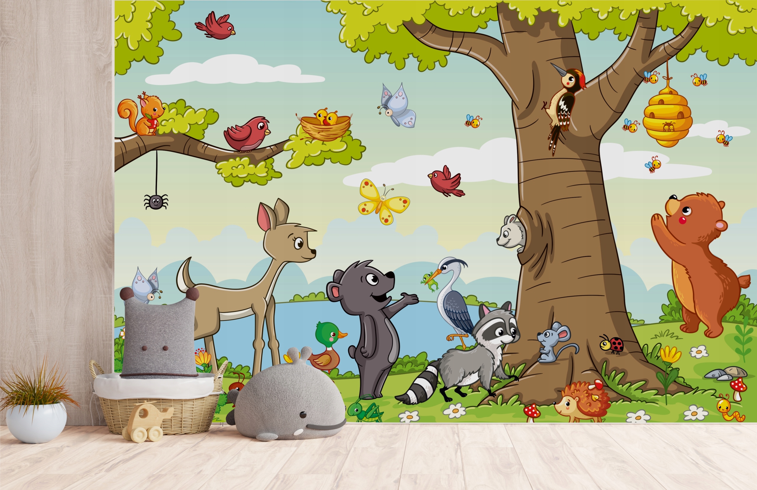 Дитячі фотошпалери Шпалери ліс, ведмедик, лісові звірята, під замовлення, клей безкоштовно
