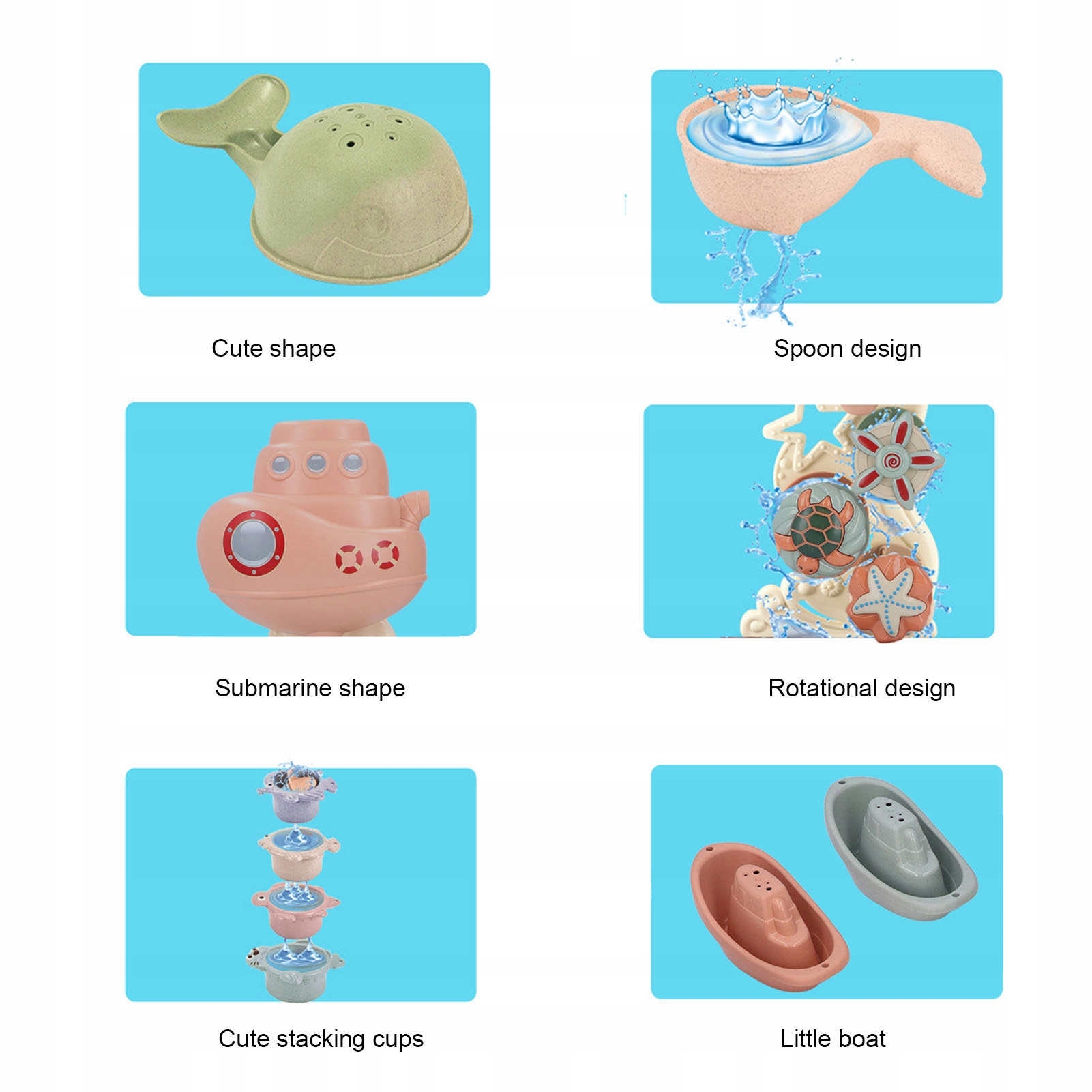 5. Пластиковый материал: детские игрушки для ванны изготовлены из высококачественного пластика, с закругленными и гладкими краями, чтобы предотвратить травмы ребенка, безопасны и долговечны в течение длительного времени.