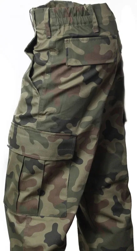 Брюки-карго – очень хороший вариант для леса, туризма или повседневного использования в городе. Благодаря многочисленным и вместительным карманам они просто очень практичны в любой ситуации – два кармана спереди, два кармана на ягодицах и два больших кармана с клапаном по бокам штанин, а в некоторых моделях можно встретить и другие. функции. Брюки также имеют регулировку ширины в конце штанины – это полезно, когда мы одеваем брюки в высокие сапоги или, наоборот, когда хотим носить их босиком или в шлепанцах. Материал прочный, его трудно испачкать. Армейские брюки – классический и проверенный вариант.