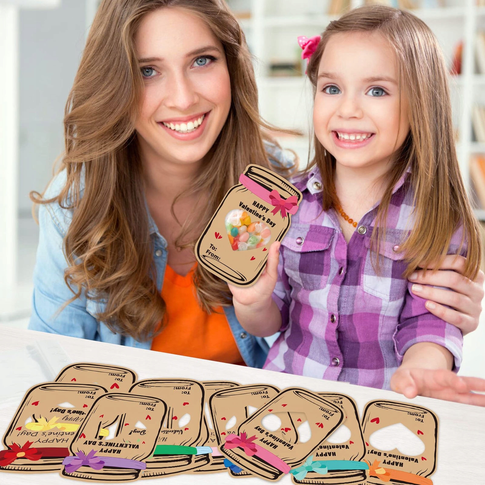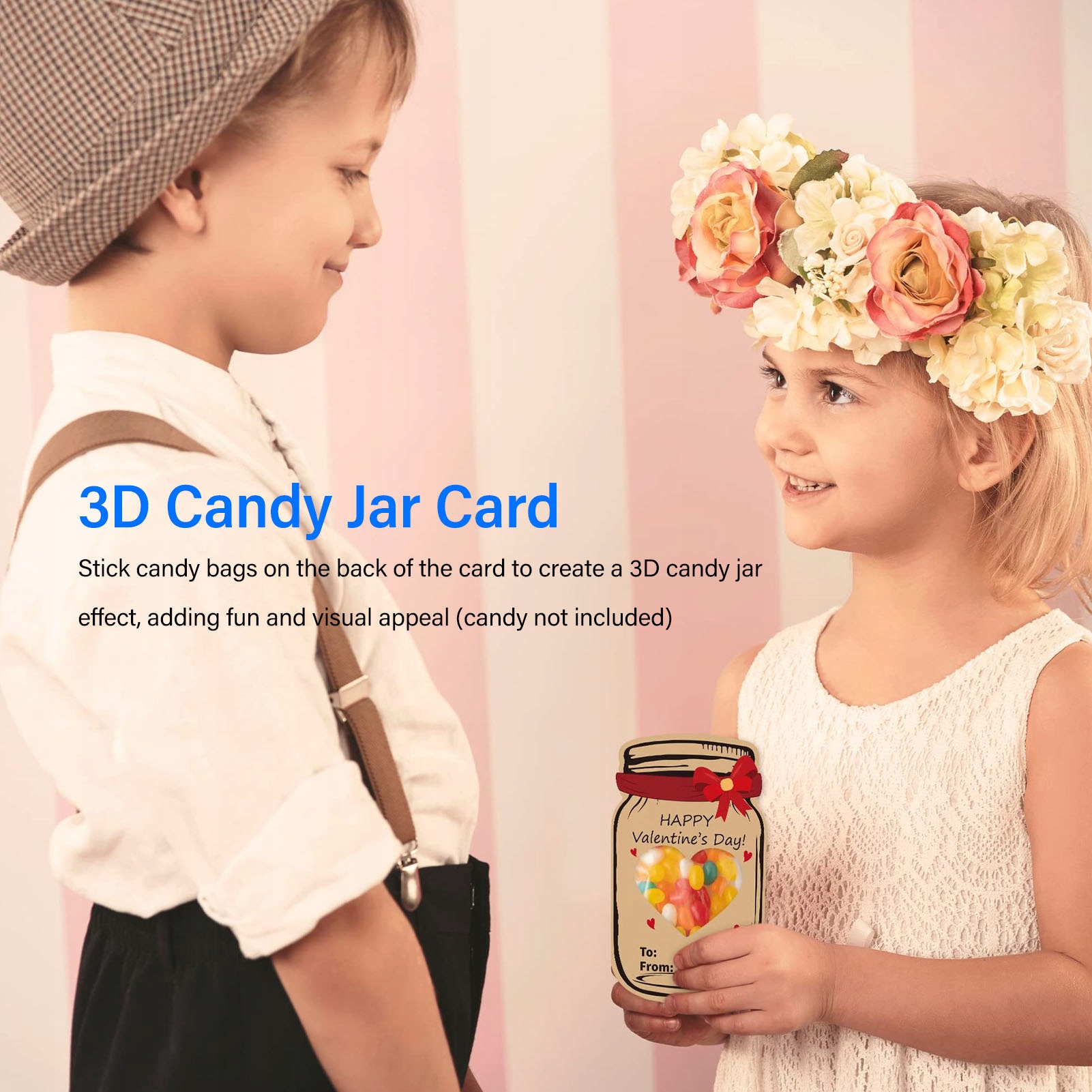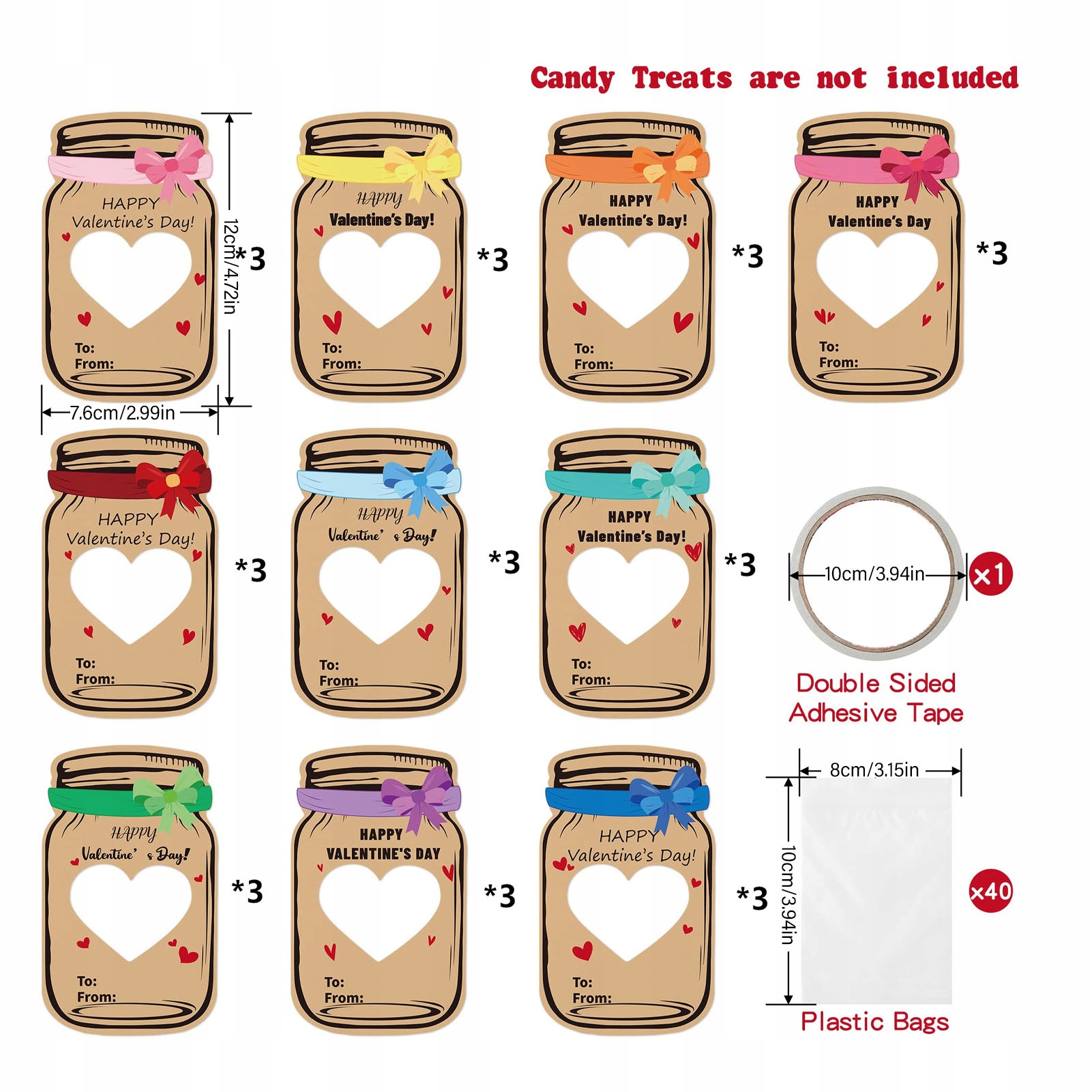🎉 Уникальный дизайн открыток: Набор из 30 открыток ко Дню святого Валентина, каждая из которых имеет уникальный милый дизайн баночки, который позволяет прикреплять пакеты с конфетами к обратной стороне, создавая забавный трехмерный эффект банки, наполненной конфетами.