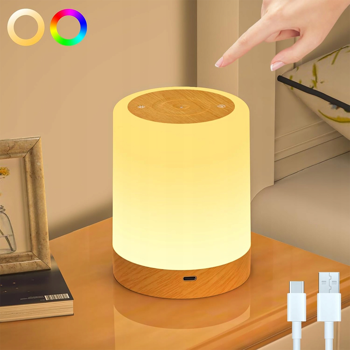 🌟🌟YOUKUKE Ночник, сенсорная регулировка яркости, 256 цветов RGB, 5 режимов, настольная лампа, беспроводная, заряжается через USB-C, функция таймера, переносная светодиодная лампа с текстурой дерева, лампа для грудного вскармливания для спальни и гостиной