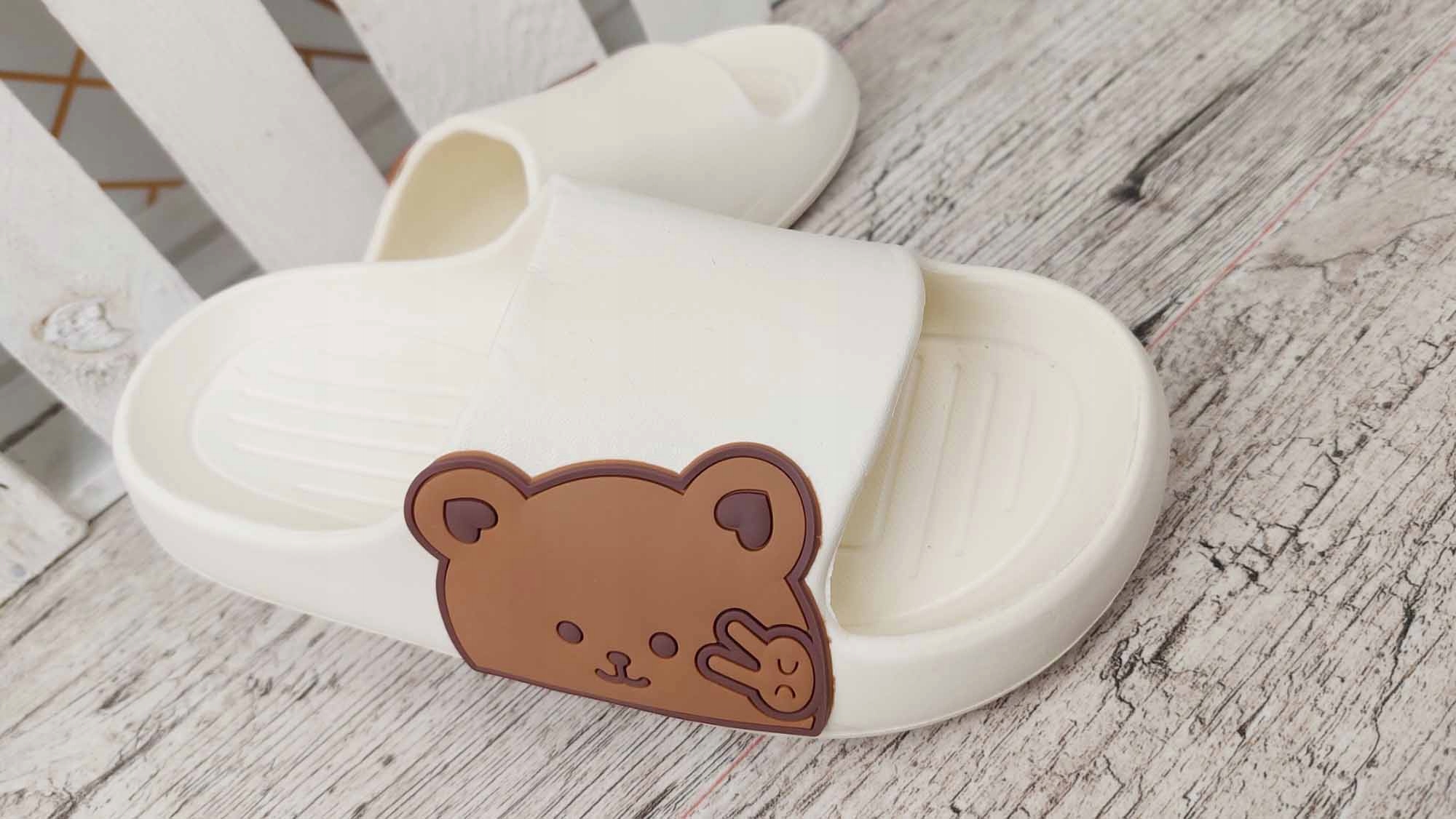 Детские шлепанцы с милым мишкой сбоку, из легкого вспененного материала. Легко поддерживать чистоту. Они идеальны для бассейна, пляжа, душа, а также могут заменить домашние тапочки.