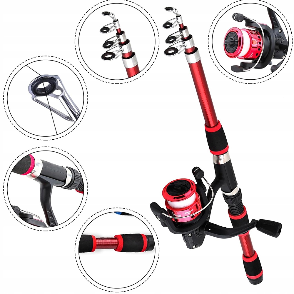 Набор телескопического стержня содержит 2 красочных стержня (синий и красный), 2 вращающиеся катушки, большой набор приманки, крючки и коробки. Нет необходимости покупать дополнительные аксессуары, чтобы новички также могли легко начать! Независимо от того, являетесь ли вы новичком или опытным рыболовом, это универсальное рыболовное кольцо удовлетворит ваши потребности!